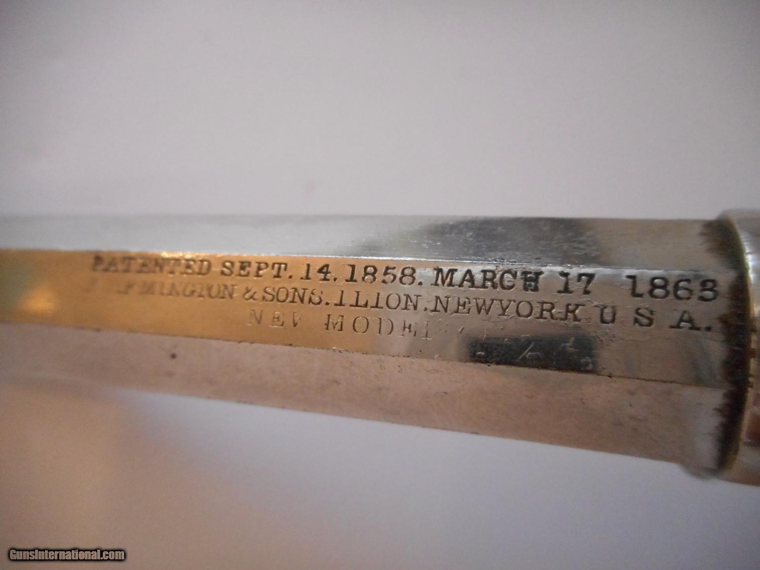 Description: FOR SALE IS A NICE HARD TO FIND FACTORY CONVERTED REMINGTON NEW MODEL POLICE REVOLVER IN 38 RIMFIRE. IT IS IN OVERALL SOLID SHAPE AND APPEARS TO BE FACTORY NICKEL PLATED MOST LIKELY WHEN IT WAS CONVERTED BY REMINGTON AS DESCRBED IN FLAYDERMAN'S 9TH EDITION PAGE 164. IT RETAINS A MAJORITY OF THE PLATING BUT DOES HAVE SOME LOSS TO THE BACKSTRAP, BUTTSTRAP, MUZZLE AND SLIGHT FLAKING OTHERWISE. THE CYLINDER SHOWS STRONG BLUING ON ONE SIDE MORE THAN THE OTHER, AND THE ACTION WORKS FINE INDEXING PROPERLY AND LOCKING UP NICE AND TIGHT. THE GRIPS SHOW A NICE MELLOW PATINA WITH ONE SLIGHT CHIP ON RIGHT GRIP BUT NO CRACKS. THE BORE SHOWS RIFLING PRESENT WITH SOME PITTING THROUGHOUT. IT HAS THE CORRECT TWO PIECE FACTORY CYLINDER AS DESCRIBED IN FLAYDERMAN'S 9TH EDITION PAGE 165. A QUITE SCARCE REVOLVER TO FIND AT A VERY REASONABLE PRICE!! SOLD Antique: Yes Manufacturer: REMINGTON Model: NEW POLICE MODEL FACTORY CONVERSION Serial Number: 689 Caliber Info: 38 RIMFIRE Bore: RIFLING PRESENT Condition: GOOD Metal Condition: GOOD Wood Condition: GOOD Bore Condition: FAIR Barrel Type: OCTAGON Action: SINGLE Triggers: SINGLE |