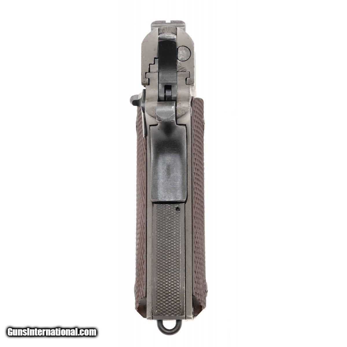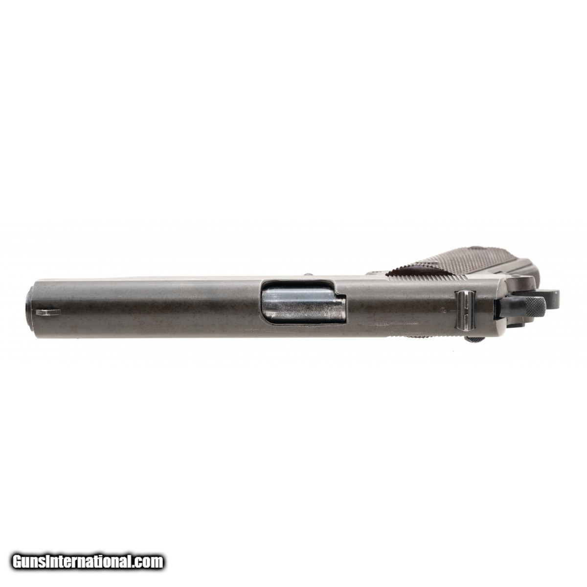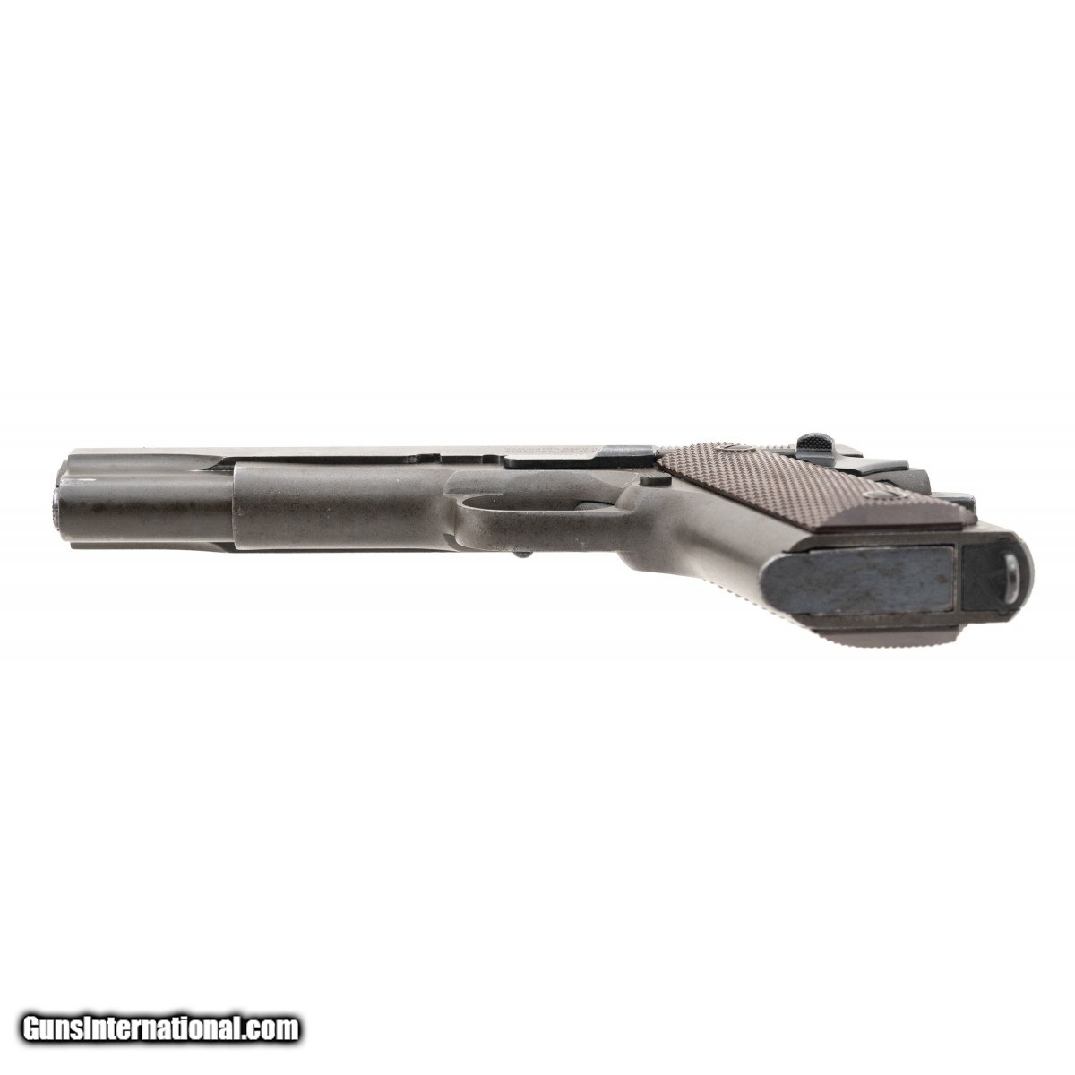 Description: " SN: 1344301. Made in 1943, 45 ACP caliber with a 5"" barrel. WWII US military pistol. Bore is very good with light etching. Has about 95% original finish. SOLD |