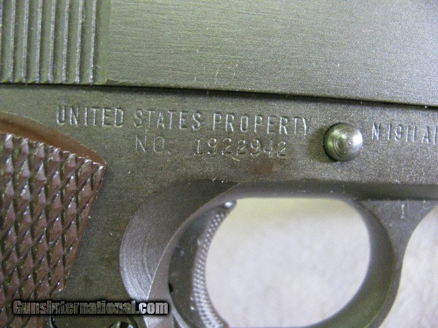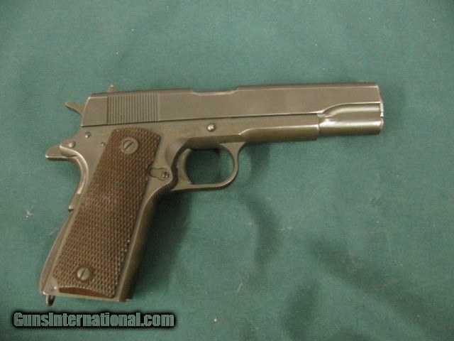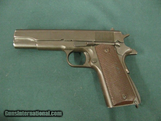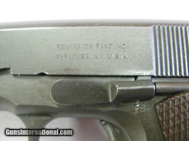 Description: 7055 Remington Rand 1911 1A 45 cal,Enger-Kess shoulder holster, 1944mfg,two "G"(General Shaver Division of Remington Rand)stamped magazines, HS(High standard) marked barrel, FJA stamped left side of frame/ordinance mark on right side.perfect bore.excellent +condition.U.S. Enger-Kress shoulder holster fine condition. SOLD Curio/Relic: Yes Handgun Caliber: .45 ACP (.45 Auto) |