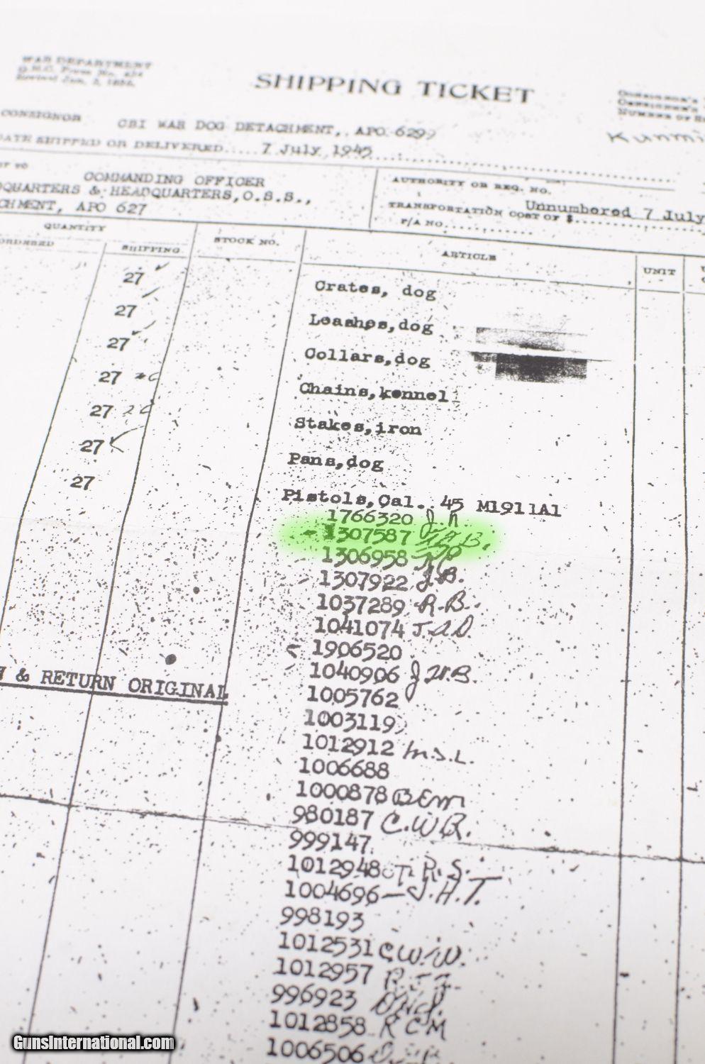M1911A1 45 ACP Remington & Rand Inc. Very Rare Documented WWII Issue. SN 1307587