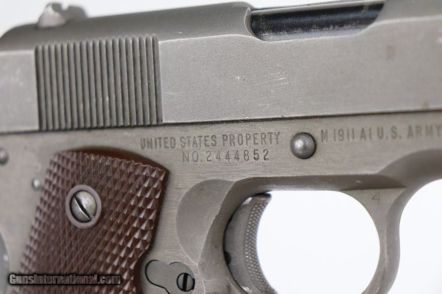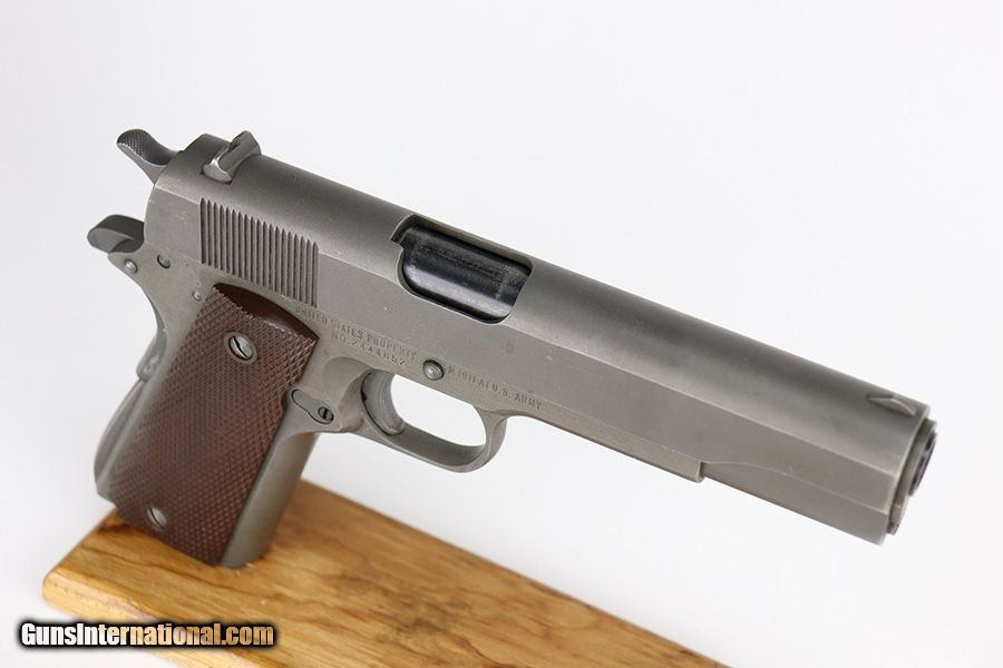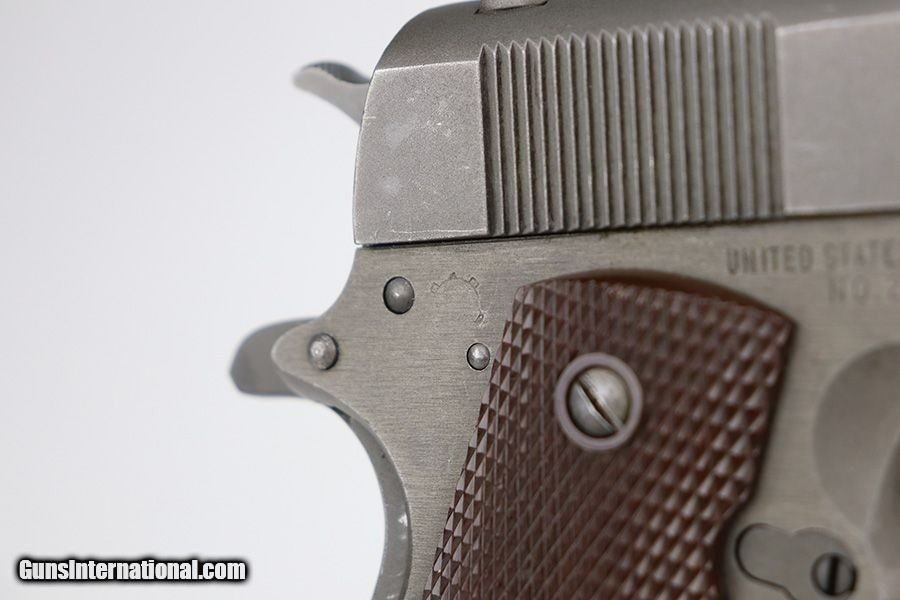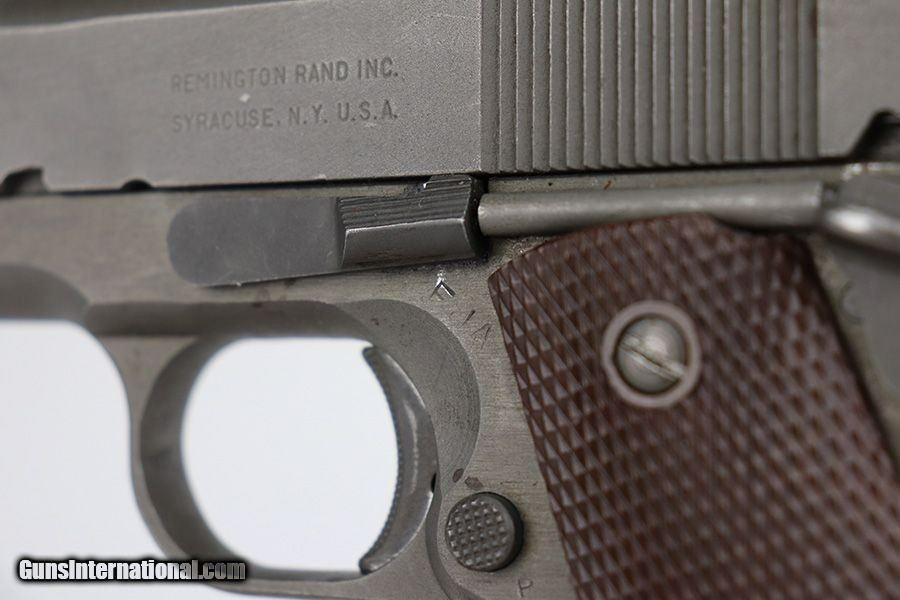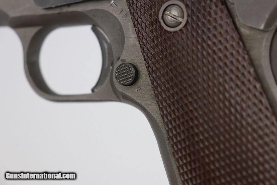 Description: This is a near-mint example of a Remington Rand Model 1911A1 issued to the US military very late in 1945. The gun is all correct, is "United States Property" marked and has a cross-canon military cartouche. High Standard barrel. The gun has retained about 98% of its original finish. There are just hints of wear on some of the high edges and very minor thinning on the straps. A few small areas of minor discoloration on the left side of the slide. Comes with excellent grips and a period-correct magazine. Excellent bore - shiny with strong rifling. SOLD Curio/Relic: Yes Handgun Caliber: .45 ACP (.45 Auto) Manufacturer: Remington Rand Model: M1911A1 Serial Number: 2444852 Condition: ~98% Bore Condition: 9/10 Manufacture Date: 1945 |