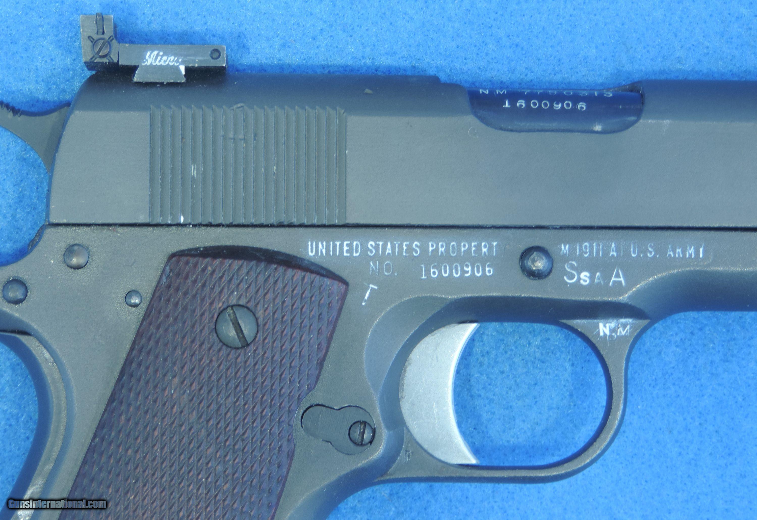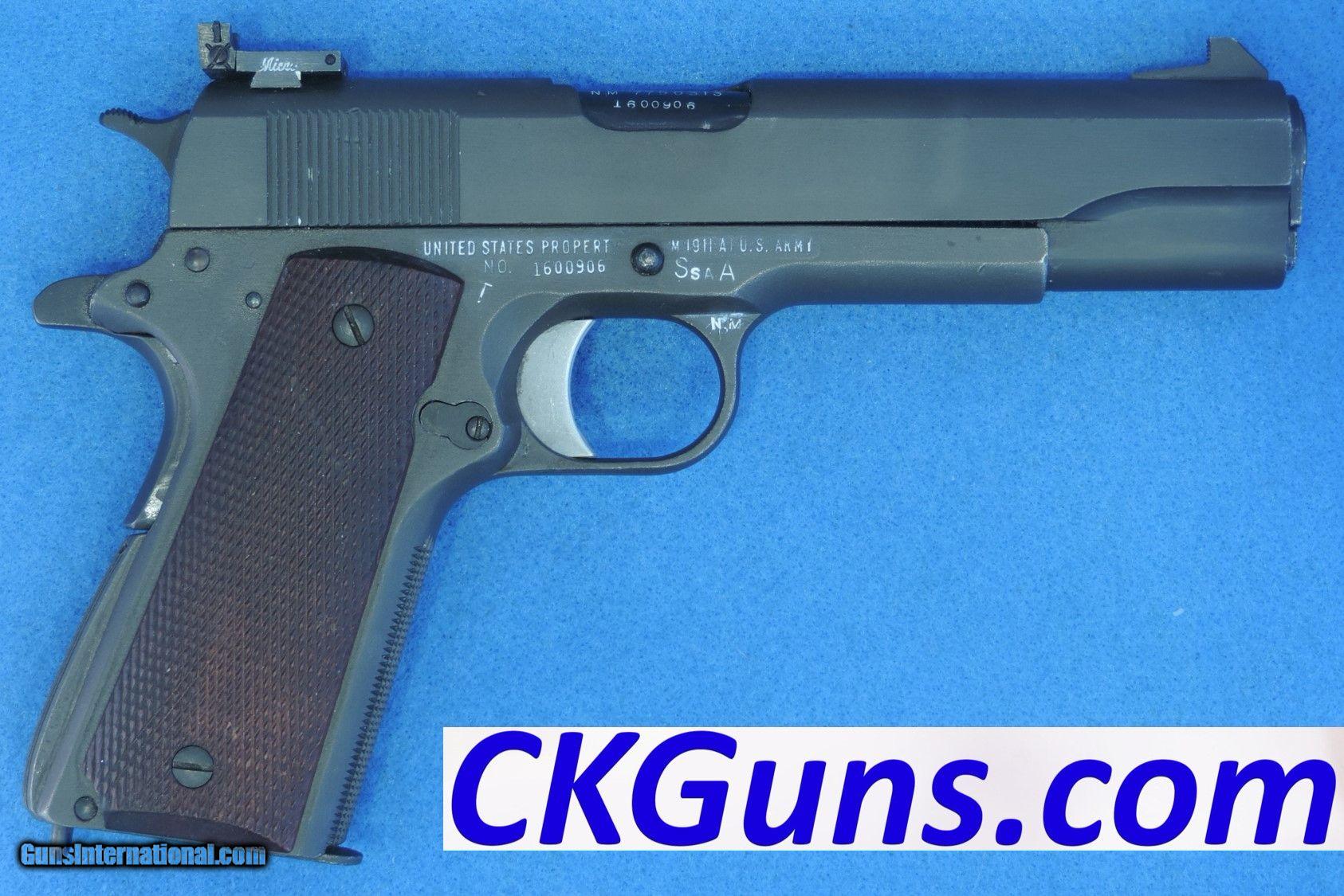 Description: Inv. 6545 Remington 1911 A1, National Match Cal. .45 acp Ser.1600906. Just about mint in every way. The Springfield Arsenal parkerizing is an easy 99.9%. There is just the every slightest sharp edge silvering. All parts match. The frame is stamped NM and SA. The barrel is stamped NM and serial numbered to the gun. The barrel bushing is also stamped NM and serial numbered. In addition, the original trigger assembly has been replaced with the proper Nation Match system. The front grip strap has correctly been checkered. The brown plastic grips have been replaced with the proper wooden checkered type. The front sight has been replaced with a ramp sight and the rear is an adjustable "Micro" sight, which is stamped with the Crossed Cannons ordinance mark. All modifications are to U.S. National Match specifications. The slide rails bolt face and feed ramp show almost no use. The bore is sunshine bright with razor sharp rifling. There is not a touch of frost anywhere. What a prize for the collector and a prize winner for the shooter....$3495. To purchase this firearm or if you want to request more information contact us at: Email ckgunsymail Phone 201-512-0002 Cell 201-575-6838 FAX 201-215-4759 We accept most major credit cards. Prices shown are Discounted 3% for Cash or Check. The buyer must be familiar with all the laws governing the purchase and the ownership of firearms in their own city and state. The Yankee Armorer, Inc is not responsible for any failure to comply with or observe these laws. The Yankee Armorer, Inc will only ship after full payment and receipt of all required documents. Shipping: Add $35.00 for handguns, $45.00 for long guns. New Jersey buyers are subject to a 7% sales tax. The Yankee Armorer, Inc offers a 3 day inspection period with full refund upon return of intact firearm and in the original condition. The Yankee Armorer, Inc offers a no interest lay away program - 25% down; 25% in 30 days; 25% in 60 days; and full payment in 90 days. Any violation of this policy is subject to restocking and forfeiture of all payments. Any variation from this policy must be agreed to in advance. Unshipped Cancelled sales are subject to a 20% restocking fee. Be advised that all firearms sold by The Yankee Armorer, Inc. or the Gun Exchange, LLC (SELLER) are sold as collector’s items. They have not been fired or tested for safety and must be examined by a license gunsmith prior to use. By purchasing any item from the (SELLER), you are agreeing to hold the (SELLER) free from any damages or lawsuits of any nature. Any item left for transfer or storage will be charged to $25.00 per month, per item from the day of its receipt. Any variation from this policy must be agreed to in advance. Store hours 10:00 am to 5:00 pm Tuesday -Saturday. It's always best to call for appointment. Store 201-512-0002, cell 201-575-6838. SOLD Curio/Relic: Yes Manufacturer: Remington Model: 1911 A1 National Match Serial Number: 1600906 Caliber Info: .45 acp |