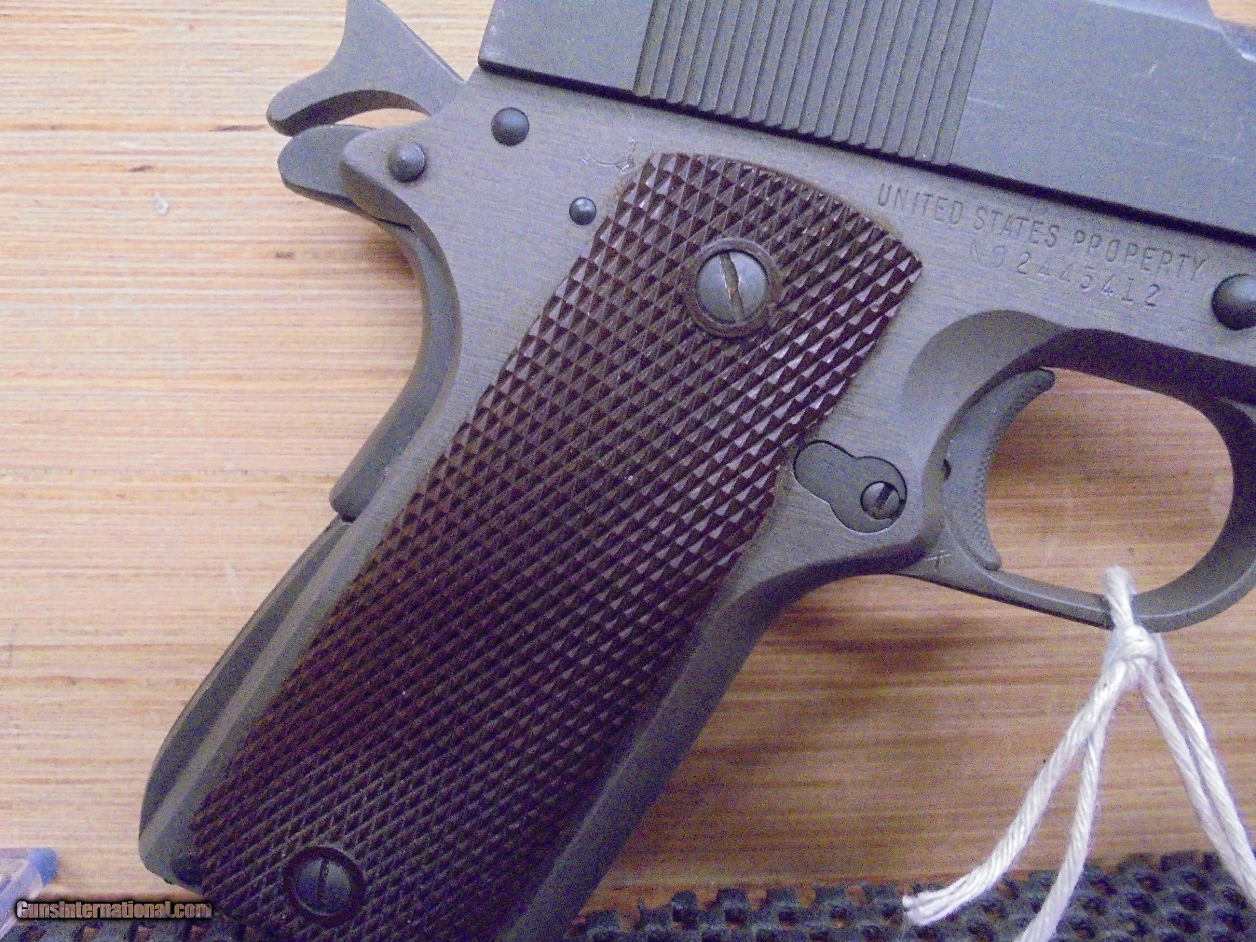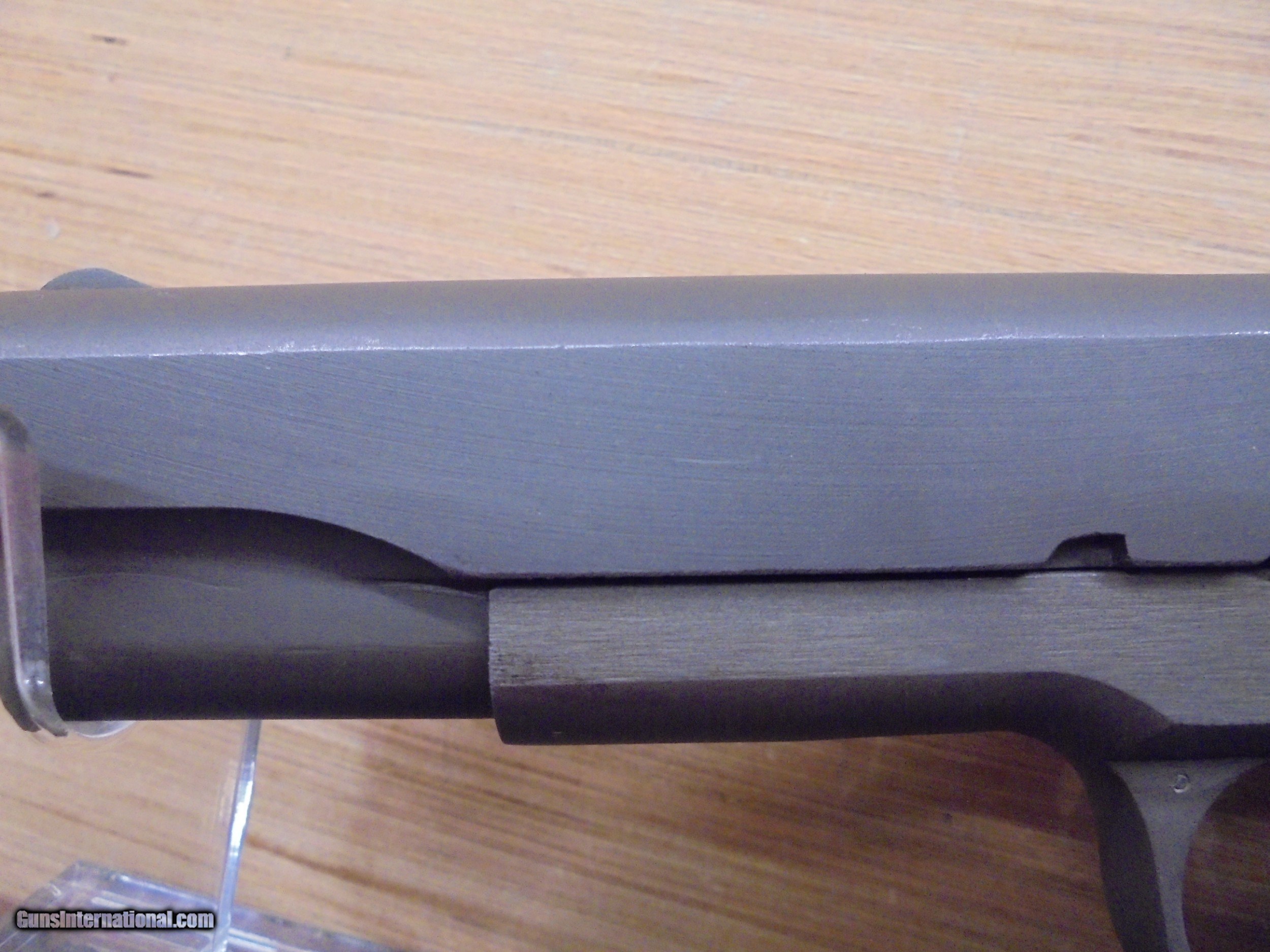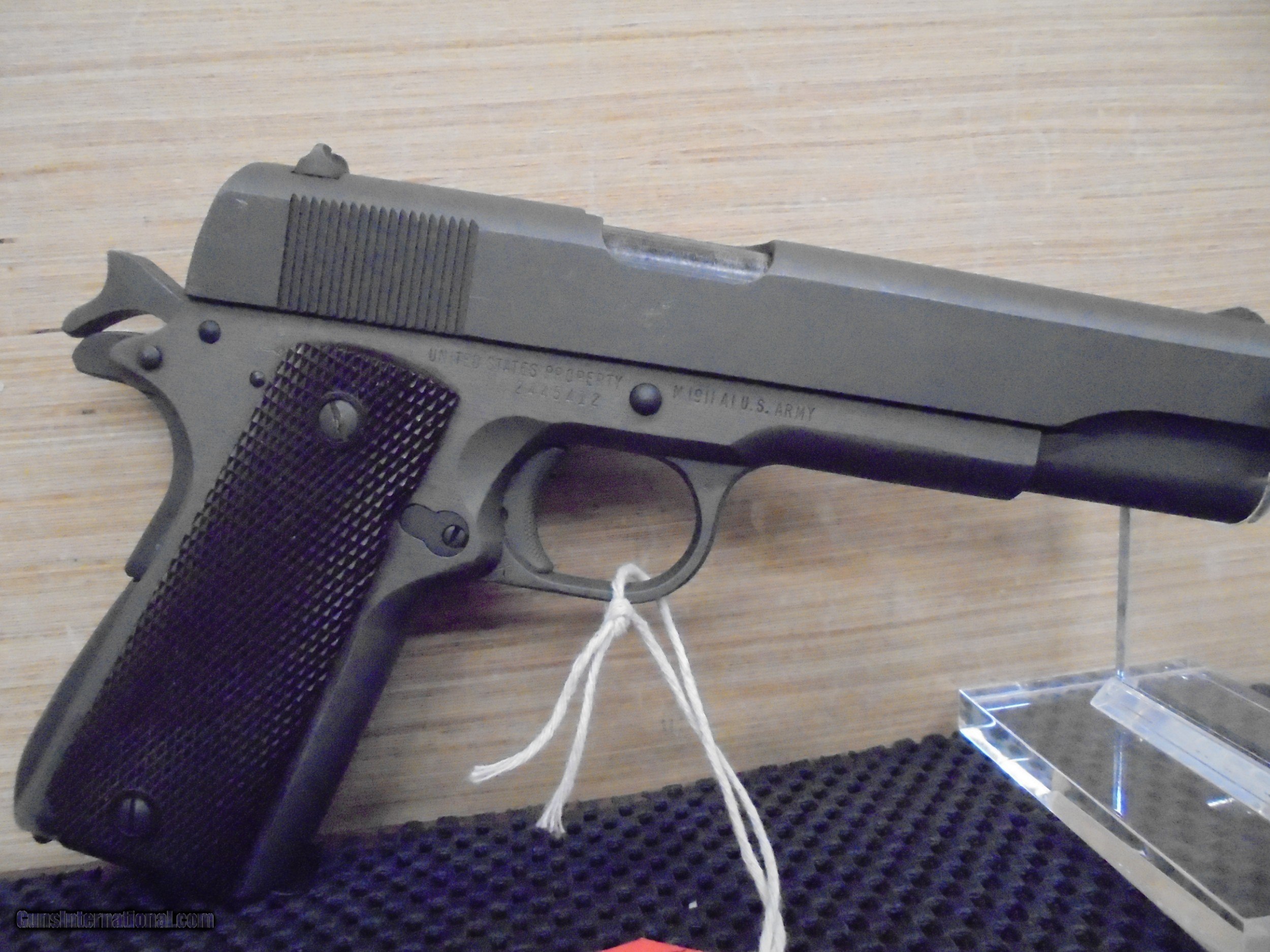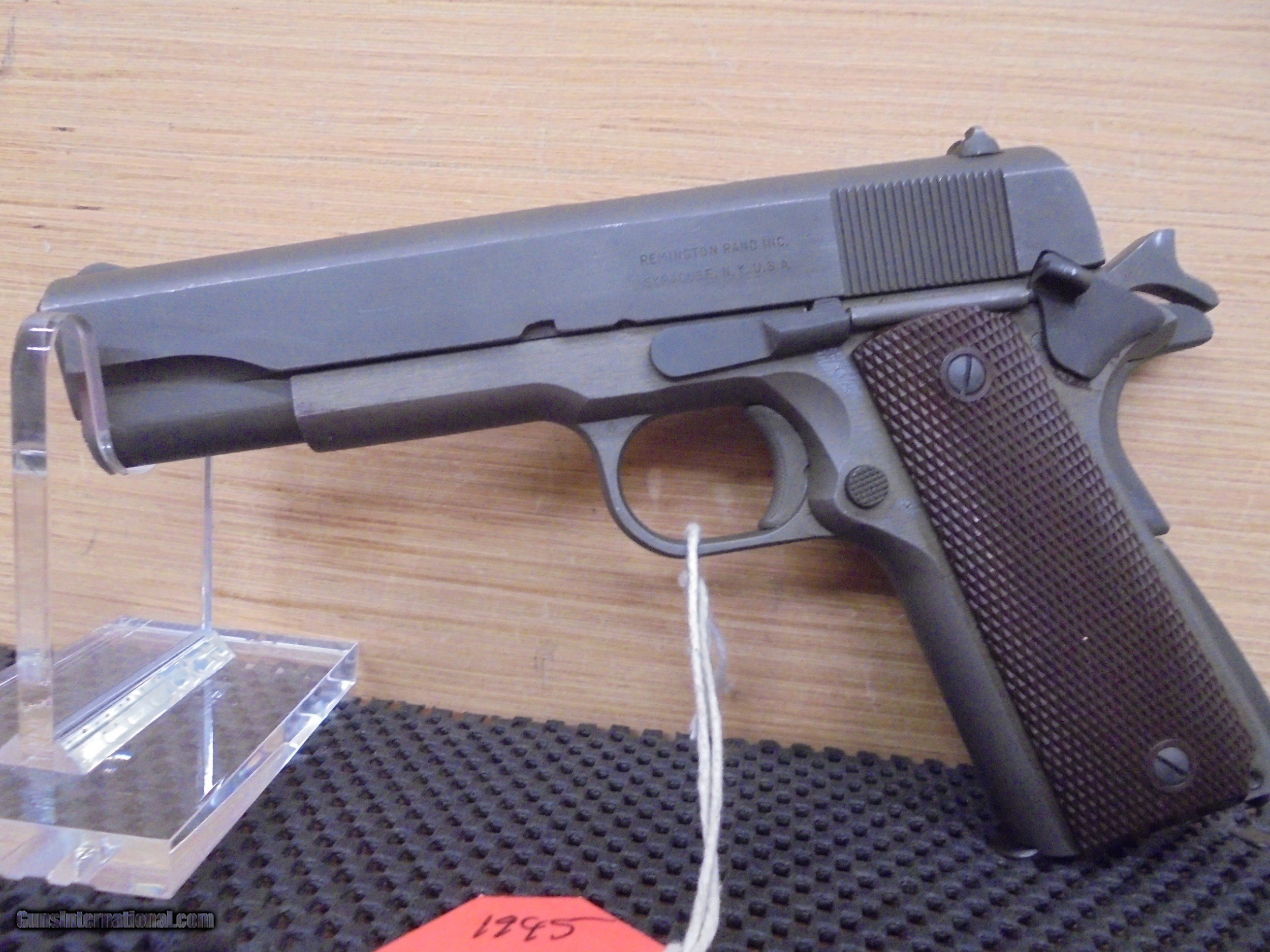 Description: USED GOOD CONDITION REMINGTON RAND INC 1911 .45 ACP -- 5" BARREL -- PLASTIC GRIPS -- 1 -8 RND MAG HAS P PROOF MARKS ON FRAME & SLIDE -- FAINT FJA STAMPED BELOW SLIDE RELEASE ON LEFT SIDE ORDNANCE INSPECTORS MARK FAINTLY ON RIGHT SIDE OF FRAME BEHIND GRIP MADE IN 1945 ****PLEASE CALL IN THE WITH THE SELLER’S INVENTORY NUMBER IF INQUIRING ABOUT A FIREARM****** WE DO NOT SHIP FIREARMS AND/OR FIREARMS’ PARTS OUT OF THE 50 UNITED STATES, SO DON’T ASK PRICE REFLECTS PAYMENT BY MONEY ORDER / CASHIERS CHECK. A 3% PREMIUM IS ADDED FOR CREDIT CARDS. WE DO ACCEPT PERSONAL OR BUSINESS CHECKS, BUT THERE IS A GRACE PERIOD OF 10 BUSINESSS DAYS ON THEM. Shipping is $40 for handgun and $30 for long gun. Shipping to Alaska and Hawaii will be more based on weight of firearm. WE DO OFFER LAYAWAY PLANS FOR 30,60, OR 90 DAYS. THERE IS A $5.00 CHARGE FOR EVERY 30 DAYS ITEM IS ON LAYAWAY. WE ALSO REQUIRE A 20% DOWN PAYMENT ON TOTAL OF LAYAWAY SALE. LAYAWAYS ARE NON- REFUNDABLE. HERE IS HOW THIS PROCESS WORKS. YOU WOULD CALL US AT 540-337-9218 WITH LISTER # TO PURCHASE THE GUN. THEN ONCE I HAVE RECEIVED PAYMENT AND AN FFL (FEDERAL FIREARMS LICENSE) FROM A LICENSED DEALER IN YOUR AREA OF YOUR CHOICE. WE WILL THEN SHIP THE GUN TO THEM. YOU WOULD THEN PICK UP THE GUN AT YOUR LOCAL DEALER AND DO PAPER WORK THERE. Please have your FFL Dealers contact information when you call. DOMINION OUTDOORS 15 ANGELA COURT FISHERSVILLE, VA 22939 540-337-9218 540-337-2422 fax M – F 9 to 6 ETZ Sat 9 – 4 ETZ ****PLEASE CALL IN THE WITH THE SELLER’S INVENTORY NUMBER**** ***PLANO HARD CASES AVAIABLE FOR PURCHASE $19.99 WITH THE PURCHASE OF A FIREARM** *** Online prices compared to in store prices will vary. *** SOLD |