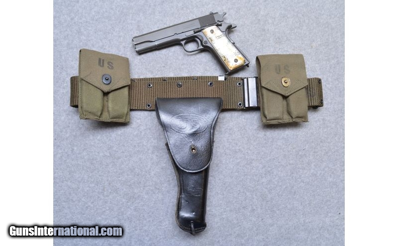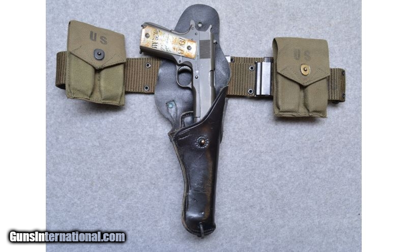Description: SOLD Manufacturer: SN:1428820 Caliber Info: 45 ACP Metal Condition: Excellent. Bore Condition: Bright And Shiny, With Good Rifling Barrels: 5 Triggers: Single Action Stock: Smooth Hand Made Pistol Grips. Weight: 2 lbs. 6 ozs. Sights: Front Blade Open Rear Sight Extras: With Pistol Belt, Holster, 2 Magazine Pouches, With 2 Extra Magazines, One Mag In Firearm. 3 Magazines Total. Item Location: Hazelwood, MO |