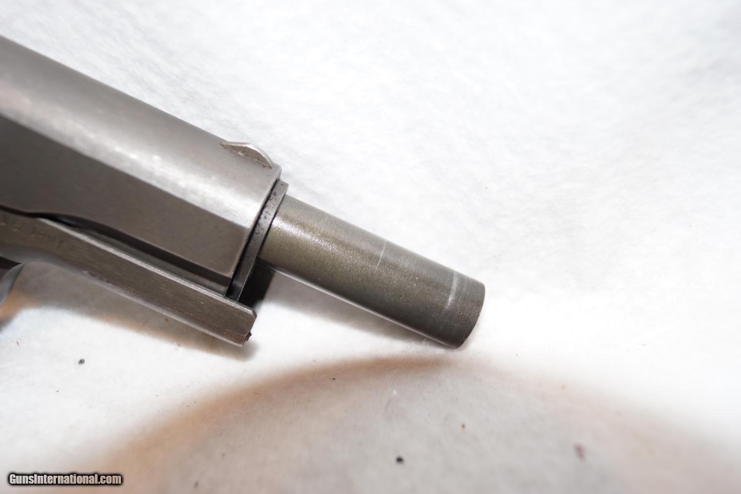 Description: This gun is marked "Remington Rand, Inc. Syracuse NY, USA" and on the right side it is marked "United States Property M1911 A1 US army" serial number is "NO2414879". There is a "P" on the front of the rear sight. Rear sight is adjustable. In my opinion, this gun is in really good shape for its age. The grips are in excellent shape, without cracks or scratches anywhere. The action, trigger and hammer and all operating mechanisms work excellently. It was stored in a holster, so the edges have some wear on them. On the top of the frame, there are two rust spots. For a little histroy: this gun was owned by an older gentleman who bought it in the 70's. He has had it this whole time and told me he only shot two clips through. SHIPPING: $45.00 (Include's insurance). INFO: CONTINENTAL US ONLY. NO SALES TO CA. ITEM MUST BE SHIPPED TO ANOTHER FFL. PLEASE EMAIL OR CALL WITH ANY QUESTIONS. THANKS SOLD Manufacturer: REMINGTON Model: RAND Serial Number: NO2414879 Caliber Info: 45 Metal Condition: OKAY Bore Condition: OKAY Barrels: 5 Action: AUTO |