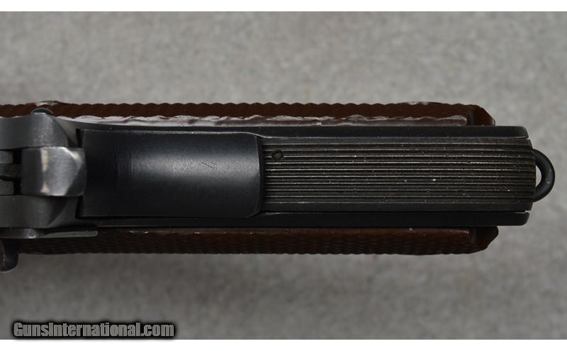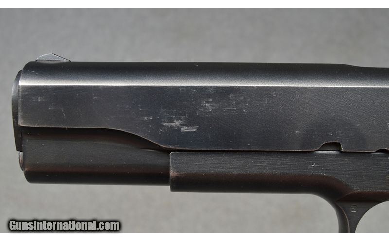 Description: Remington Rand M1911 A1, U.S. Property marked pistol in great condition. Made in 1945, this pistol features U.S. Army and Ordnance marks and lanyard ring. Minor finish thinning to relief edges and scratches on the slide. SN: 2175614 .45 ACP SOLD Curio/Relic: Yes Metal Condition: Great Wood Condition: Great Bore Condition: Strong rifling Barrels: 5 Weight: 2 lb 7 oz Item Location: Fort Worth, TX |