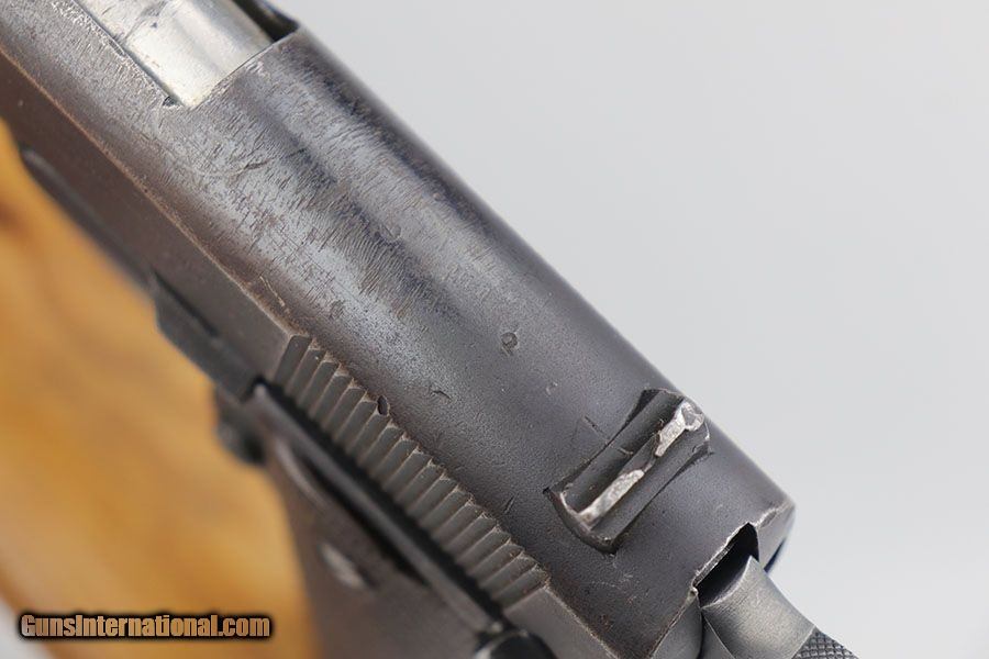 Description: This is an uncommon and interesting Remington 1911A1 that was issued to the US military during World War II, but made its way through Vietnam where it was converted to the 7.62x25mm Tokarev cartridge. The frame and slide are both Remington produced given the inspectors mark and slide legend, but the serial appears redone by whoever did the conversion. It's possible it was the Chinese after the Korean War but most likely is the Viet Cong. The finish is worn on the front strap and left side of the slide. The barrel is of course modified and converted to the Tokarev cartridge and has a minty bore. The magazine is a 10mm Colt mag that came with the gun, and we believe fits the cartridge but we don't have the ammo here to test it. Comes with a 1918 dated military holster that has the name 'Sgt. Hernandez' on the back. SOLD Curio/Relic: Yes Handgun Caliber: 7.62x25mm Tokarev Manufacturer: Remington Model: 1911A1 Serial Number: 2716523 Condition: ~80% Bore Condition: 9.5/10 Manufacture Date: WW2 |