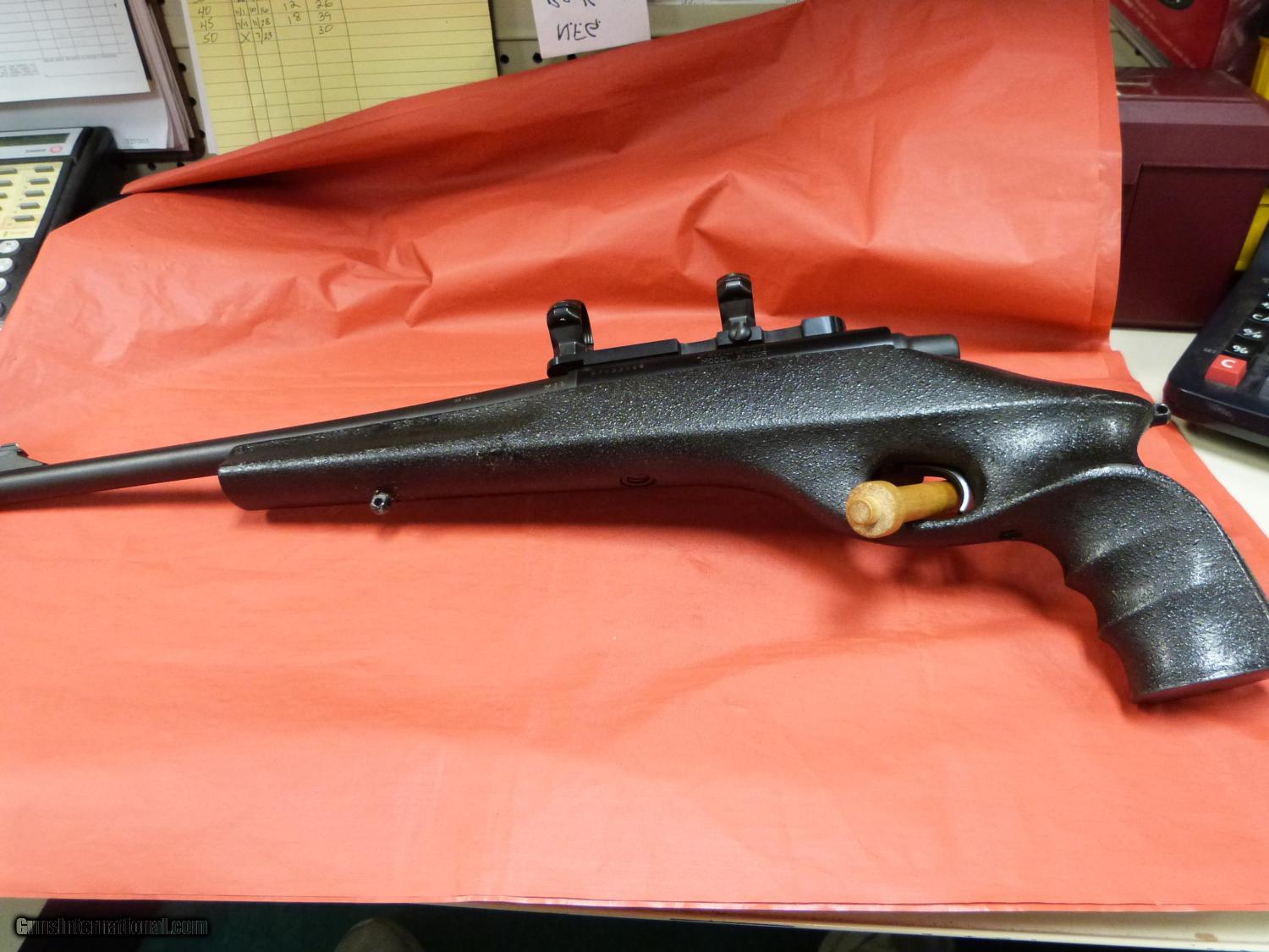 Description: Remington's XP 100-R, Custom Shop repeating pistol,. .35 Remington, 14" bbl..Amature repair of front slling swivel is the only flaw in the gun. This hunting gun shows little use. $850. (CC+3%) Shipping $25.00 SOLD |