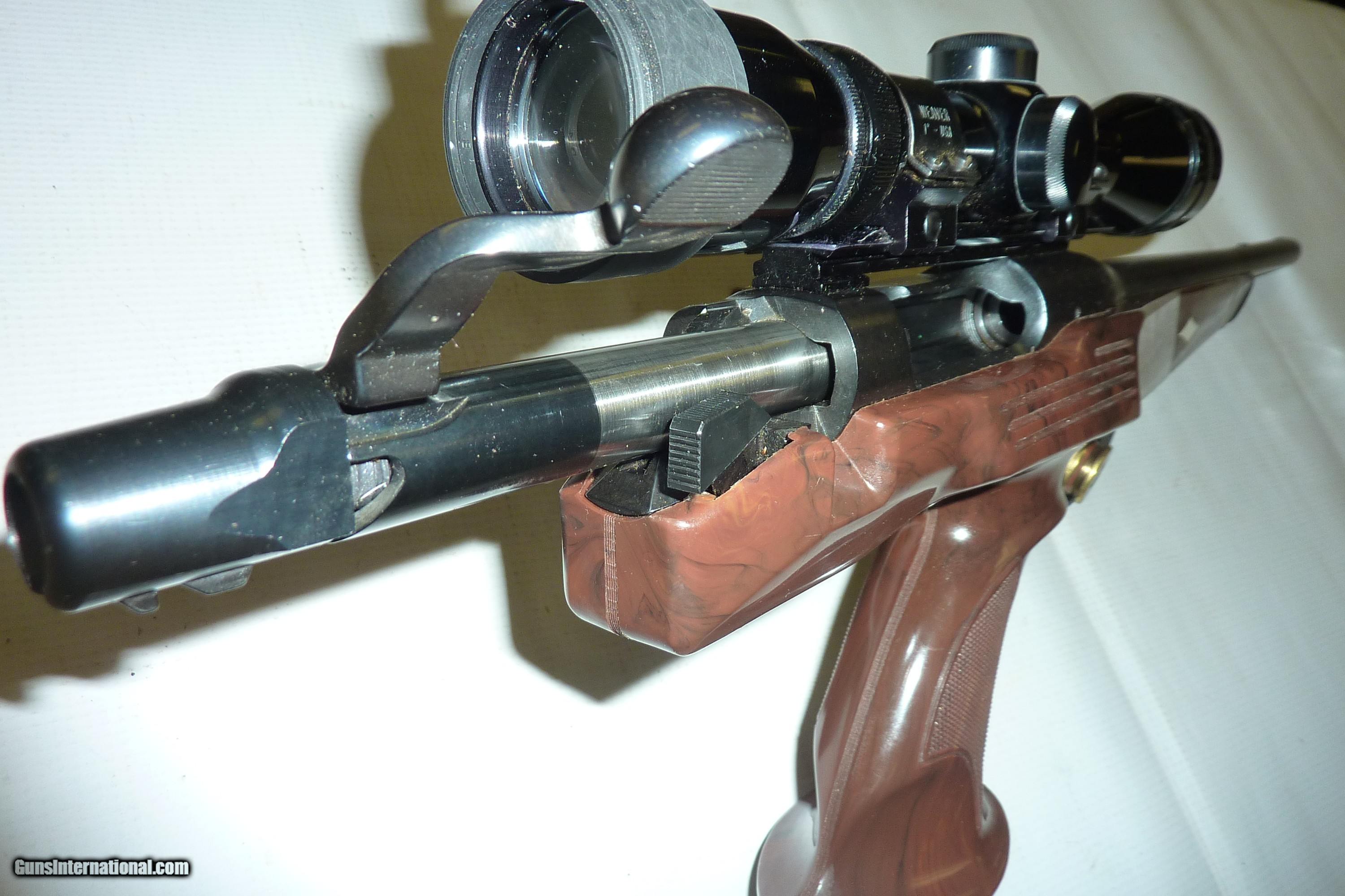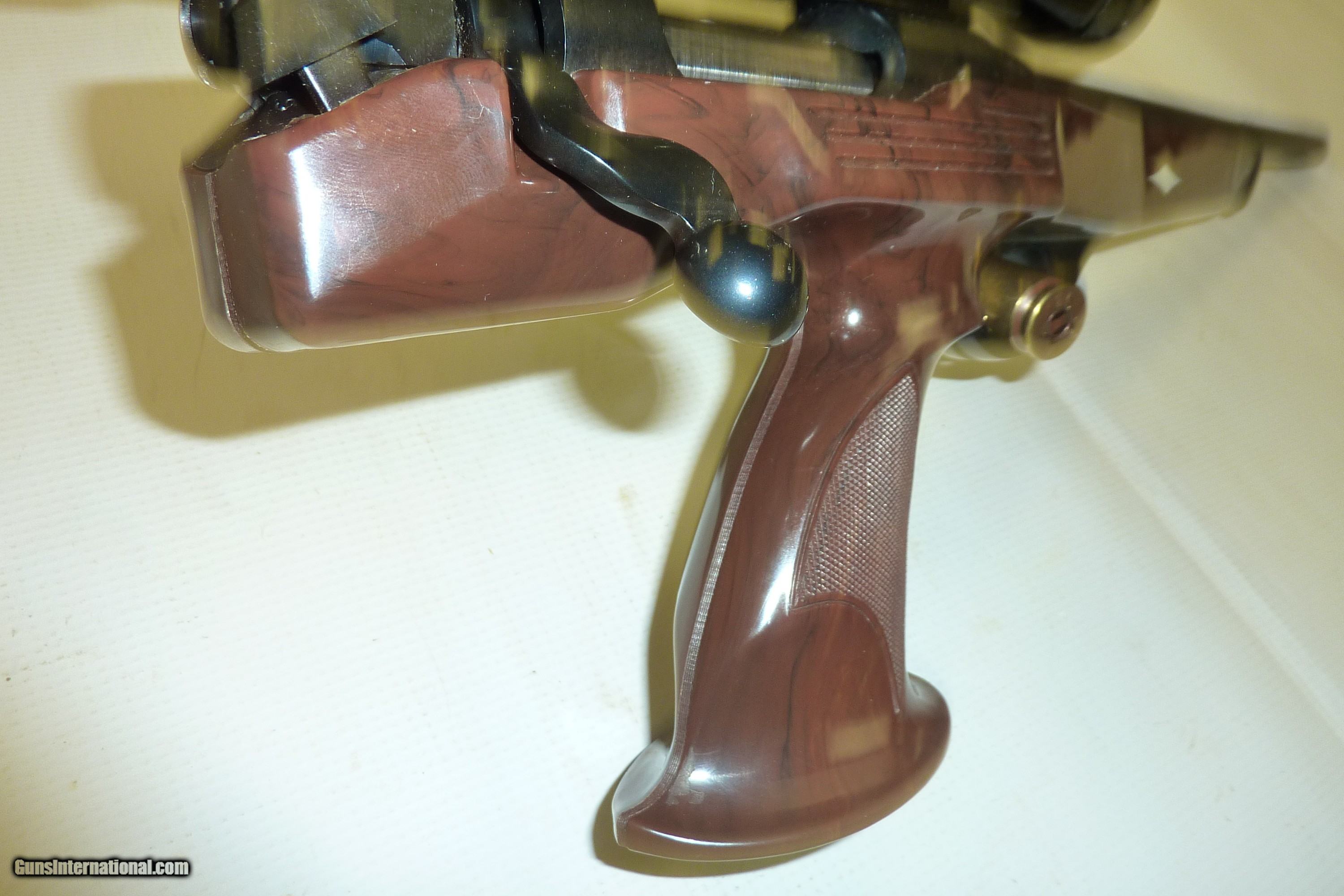 Description: REMINGTON XP-100 SILHOUETTE 35 REM 14.5" BBL SINGLE SHOT BROWN NYLON PISTOL GRIP WITH 2 WHITE DIAMOND INLAYS. STOCK FREE FROM CRACKS OR CHIPS. DOG LEG BOLT HANDLE, BASED ON THE REMINGTON 600 ACTION BLUED FINISH IN EXCELLENT CONDITION. BRIGHT BORE DRILLED AND TAPPED, BURRIS 3X9 PISTOL SCOPE. SERIAL # B7525337 MFG 1987-1992. COMPLETE WITH THE BROWN ZIPPERED FACTORY CASE AND OWNER MANUAL. SHIPPING & INSURANCE. IS $65.00 SOLD Handgun Caliber: .357 Remington Maximum Manufacturer: REMINGTON Model: XP-100 Serial Number: B7525337 Barrel Length: 14.5 Bore: EXCELLENT Chambers: EXCELLENT Condition: EXCELLENT Metal Condition: EXCELLENT Bore Condition: EXCELLENT Barrel Type: PLAIN Action: SINGLE |