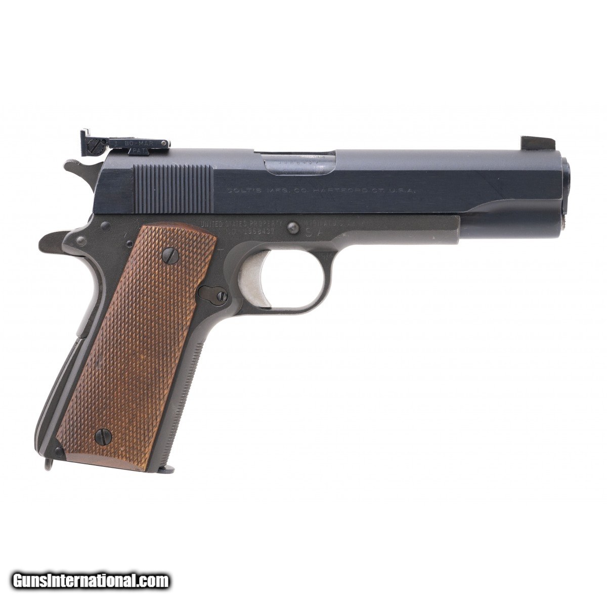 SN: 1958437. Made circa 1940's. .45ACP with a 5"" barrel. Bore is shiny with strong rifling. U.S. GI National Match competition pistol built by military armorer. Pistol retains 98% of the original finish. Wood checkered grips are in very good condition with light handling wear. Action functions properly. Overall very good condition example of a national match pistol.