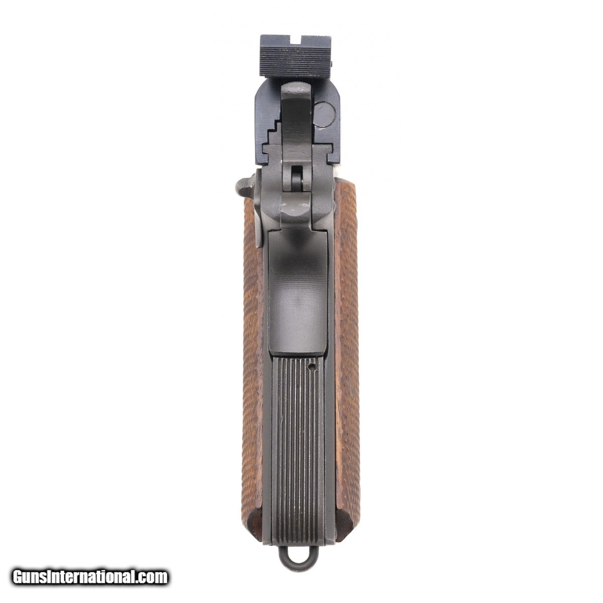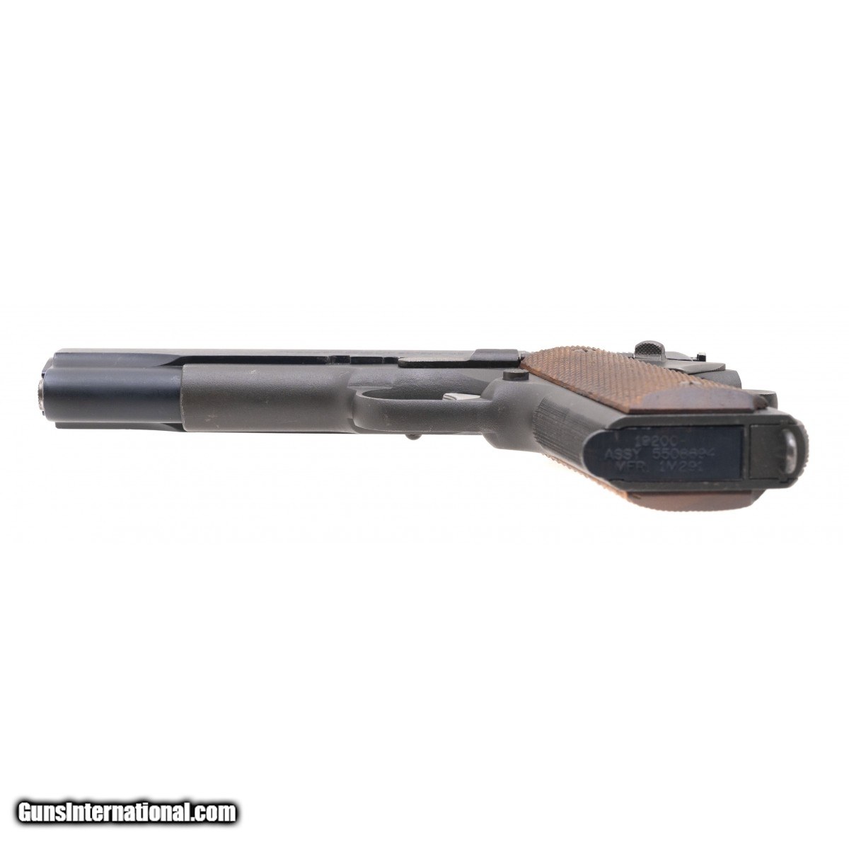 Description: " SN: 1958437. Made circa 1940's. .45ACP with a 5"" barrel. Bore is shiny with strong rifling. U.S. GI National Match competition pistol built by military armorer. Pistol retains 98% of the original finish. Wood checkered grips are in very good condition with light handling wear. Action functions properly. Overall very good condition example of a national match pistol. SOLD Curio/Relic: Yes |