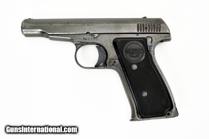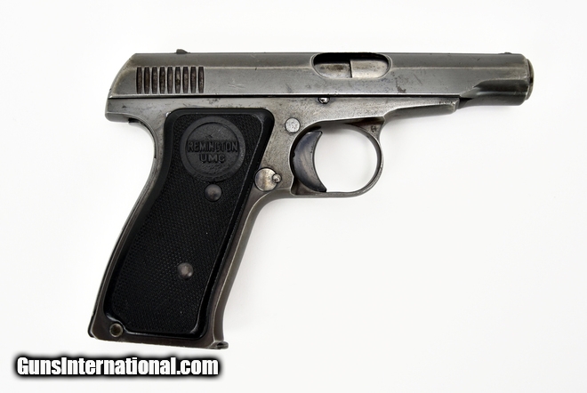 Remington 51 .380 ACP caliber pistol. Prewar carry pistol. Bore is poor with pitting. Metal has a gray brown patina. Grips are very good, no cracks. Good overall condition.