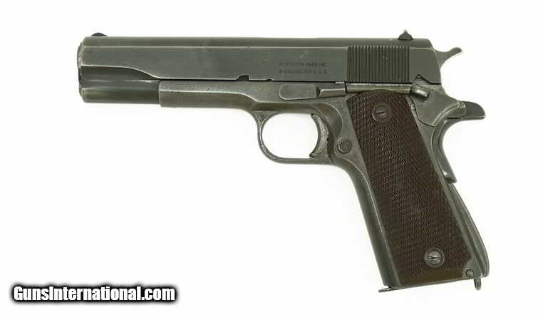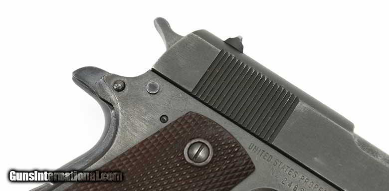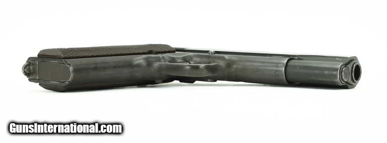 Description: Remington M 1911A1 .45 ACP caliber pistol. WWII late war manufactured Remington 1911A1. Bore is very good plus. Action works perfectly. Note: this is a correct late war Remington frame that shows some actual use. The Remington slide is correct but is in better condition than the frame so while it is all Remington, the slide does not come with the gun, in our opinion. SOLD Curio/Relic: Yes |