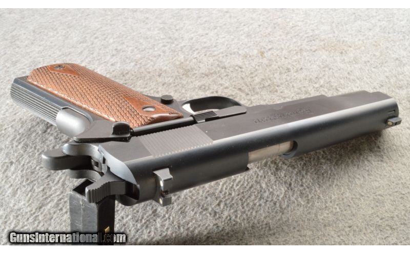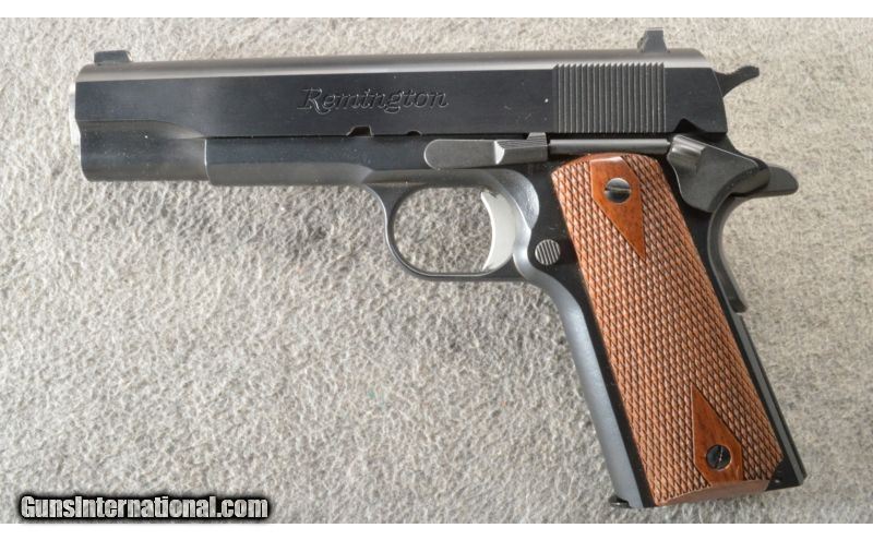 Description: This is a very nice and clean Remington 1911 R1 in .45 ACP. The black finish is excellent condition with very minor marks under the takedown lever. The walnut grips are also new looking. The bore is bright and shiny and the pistol is range ready. SOLD Caliber Info: .45 ACP. Chambers: Semi-Auto 7+1. Metal Condition: Excellent Wood Condition: Excellent Bore Condition: Excellent. Barrels: 5 inch with sights on the slide. Triggers: Single. Stock: Double Diamond checkered walnut. Weight: 39 Oz. Sights: Three dot (white). Extras: Comes with an extra mag. Item Location: Owatonna, MN |