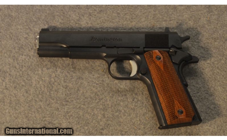 Description: This is a pre-owned Remington 1911 R1 in .45 Auto with a 5” barrel. This pistol features a stainless steel barrel, high polish blue slide and frame, checkered double diamond walnut grips, 7 round magazine, rear slide serrations, and fixed 3 dot sights. This handgun is in excellent condition with no visible wear, and appears to be unfired. SOLD Caliber Info: .45 Auto Metal Condition: Excellent condition, with no visible wear. Wood Condition: Excellent condition, with no visible wear. Bore Condition: Clean with bright lands, appears to be unfired. Barrels: 5” Stock: Checkered double diamond walnut grips. Weight: 2 ½ lbs. Sights: Fixed 3 dot sights. Extras: Comes with the factory box, manual, padlock, bushing wrench, and 2 factory 7 round magazines. Item Location: Glendale, AZ |