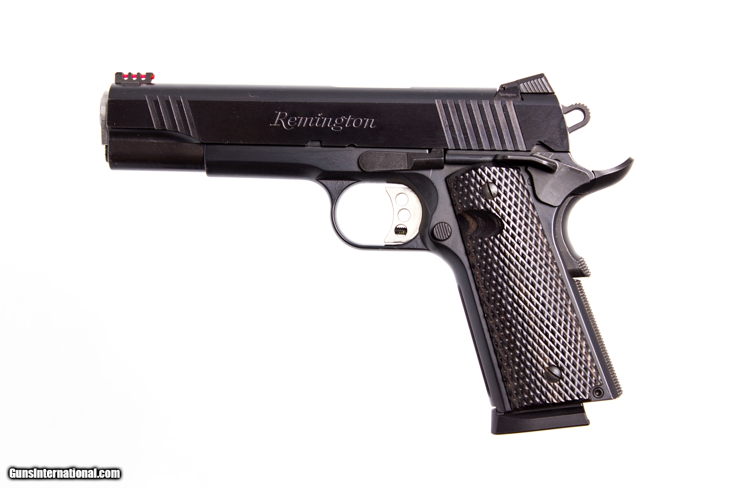 REMINGTON 1911 R1 ENHANCED 45 ACP 5 INCH FIXED SIGHTS WITH A FIBER OPTIC FRONT SIGHT STEEL FRAME WITH WOOD LAMINATE GRIPS COMES WITH 1 EXTRA MAGAZINE. This gun is in excellent condition and is covered by Dury's Lifetime Warranty.
