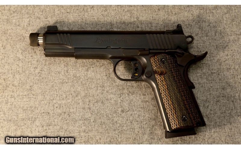 Description: This is a pre-owned Remington 1911 R1 Enhanced Threaded barrel in .45 ACP SOLD Caliber Info: .45 ACP Metal Condition: Very good with a few small scratches Wood Condition: Very good with a few small scratches Bore Condition: Clean with bright lands Barrels: 5.75 Stock: Checkered laminate Weight: 2.5 Sights: High 2-dot fixed Extras: Comes with the factory case, manual and two 8 round magazines Item Location: Glendale, AZ |