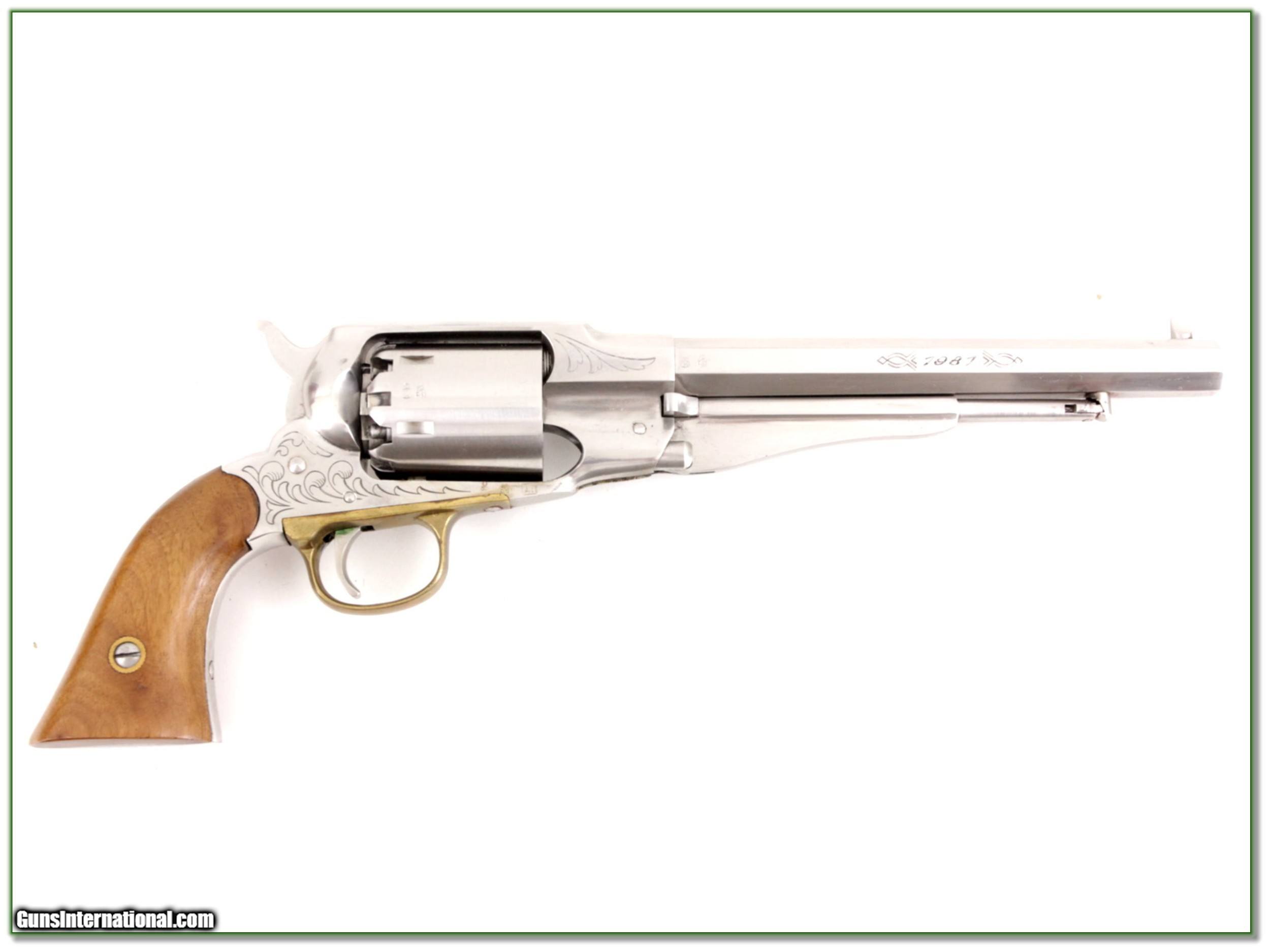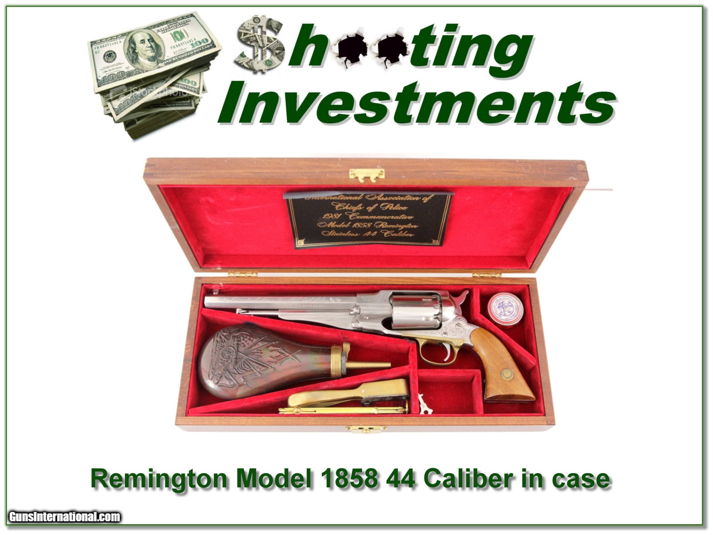 Description: This is a 1981 made Remington Model 1858 44 caliber. It is a beautiful reproduction for the Association of Chiefs or Police. It has a 7.75in stainless barrel and come as seen with all accessories and I n wood case. The gun looks unfired. The case some marks from storage. I am selling this one on consignment and as such lay-a-way can’t be used. It does of course have the standard 3-day inspection. Shipping with insurance is $39. Please email me with any questions or larger pictures. (Consign your quality firearms with Shooting Investments for only 12%! Let me know if you have any you would like to sell!) 19-0724 Payment: Payment is by Money Order, Cashiers Check or Personal Check. I can now also accept Credit Cards (MasterCard, Visa, Discover & American Express) with a 3% convenience fee. PayPal can be used for some items but never for firearms. Shipping: The shipping charge will be listed in each description. It is $39 for most firearms. Some heavy guns or those insured for over $2000 will be higher. Shipments to Alaska and Hawaii are higher because air shipment is required. Most firearms are shipped on Tuesday and Thursday and usually in 5 days of receipt of payment. We package all shipments carefully and insure them. Optics are shipped Priority Mail and most other non-firearm shipments are shipped First Class. Returns: Our return policy is simple. If for any reason you are not pleased with your purchase, you may return your item for a full refund of purchase price. Ammunition cannot be returned. It is important to us that you are happy. Guns cannot be fired or dissembled before returning them and they must be returned in the same condition as received. Notification of a return must occur with-in 3 days of receipt at your dealer. Shipping, convenience and dealer fees are not refundable and are the responsibility of the buyer. Lay-a-way: If needed, we offer a 60 day lay-a-way option on most firearms. It is 1/3 now, 1/3 in 30 days and 1/3 in 60 days. Lay-a-way firearm sales are final and if not completed the first payment cannot be returned. Consigning your firearms with Shooting Investments: We will help you get top dollar for your firearms. While most local guns shops charge 20% or more, our fee is only 12% with a minimum of $75. At your local gun shop it might take months to sell. Selling on-line provides instant access to thousands of interested buyers. You won’t find any other on-line dealer willing to sell your firearms for only 12% or listing every gun on 3 separate s. Selling through an House typically costs the seller 15% and the buyer an addition 15% (so 30%) and you have to wait several months to sell and longer to receive funds. If properly priced, we will sell your firearms in a few weeks. Send us an email or give us a call and we’ll explain how easy it is for you to get top dollar. Trading: Trading for use is really just buying your gun to re-sell. If you have a gun you want to trade, please email a picture and we will let you know what we can give or it. You will always get more if we sell it for you on consignment. Help for California Buyers: We are happy to ship to California. It is the buyer’s responsibility to make sure any item you buy is legal in your state. We are also happy to help with your purchase of a firearm from someone other than us. If you see a gun you would like to buy but the seller can’t or won’t ship to California they can ship to use and we’ll then ship it to your California dealer. The cost for this service is only $30 + shipping. Let us know if we can help! SOLD |