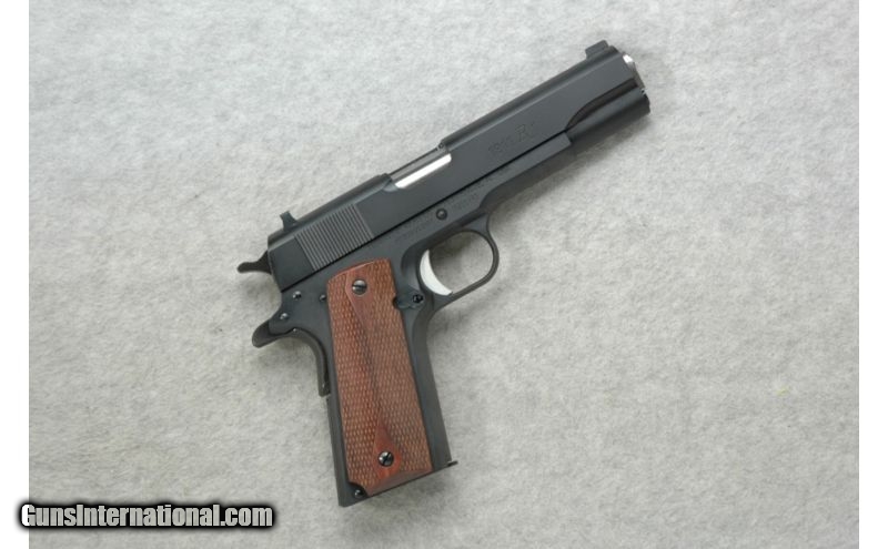 Description: SOLD Caliber Info: .45 A.C.P. Chambers: 7 shot magazine. Metal Condition: Excellent Bore Condition: Excellent Barrels: 5 inches. Stock: Diamond checkered hardwood. Weight: 39 oz. Sights: Blade front. Notch rear. 3 white dot. Extras: With Box Item Location: Richfield, WI |