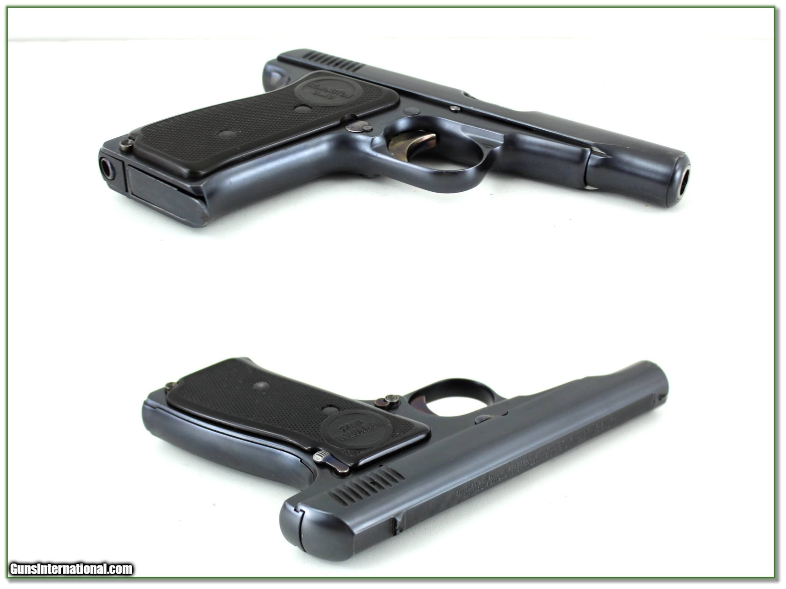 Description: Collectors, this is a 1919 made Remington Model 51 380 auto excellent collector condition! I find no marks on metal or grips. You’ll look hard to find a nice one! I am selling this one on consignment and as such lay-a-way can’t be used. It does of course have the standard 3-day inspection. Shipping and insurance is $39. Please email me with any questions or larger pictures. (Consign your quality firearms with Shooting Investments for only 12%! Let me know if you have any you would like to sell!) 22-0213 Payment: Payment is by Money Order, Cashiers Check or Personal Check. I can now also accept Credit Cards (MasterCard, Visa, Discover & American Express) with a 3% convenience fee. Shipping: The shipping charge will be listed in each description. It is $49 for most long guns. Some heavy guns, over 48in boxes or those insured for over $2000 will be higher. Shipments to Alaska and Hawaii are higher because air shipment is required. Most firearms are shipped on Tuesday and Thursday and usually in 5 days of receipt of payment. We package all shipments carefully and insure them. Optics are shipped Priority Mail and most other non-firearm shipments are shipped First Class. Returns: Our return policy is simple. If for any reason you are not pleased with your purchase, you may return your item for a full refund of purchase price. Ammunition cannot be returned. It is important to us that you are happy. Guns cannot be fired or dissembled before returning them and they must be returned in the same condition as received. Notification of a return must occur with-in 3 days of receipt at your dealer. Shipping, convenience and dealer fees are not refundable and are the responsibility of the buyer. Lay-a-way: If needed, we offer a 60 day lay-a-way option on most firearms. It is 1/3 now, 1/3 in 30 days and 1/3 in 60 days. Lay-a-way firearm sales are final and if not completed the first payment cannot be returned. Consigning your firearms with Shooting Investments: We will help you get top dollar for your firearms. While most local guns shops charge 20% or more, our fee is only 12% with a minimum of $75. At your local gun shop it might take months to sell. Selling on-line provides instant access to thousands of interested buyers. You won’t find any other on-line dealer willing to sell your firearms for only 12% or listing every gun on 3 separate s. Selling through an House typically costs the seller 15% and the buyer an addition 15% (so 30%) and you have to wait several months to sell and longer to receive funds. If properly priced, we will sell your firearms in a few weeks. Send us an email or give us a call and we’ll explain how easy it is for you to get top dollar. Trading: Trading for use is really just buying your gun to re-sell. If you have a gun you want to trade, please email a picture and we will let you know what we can give or it. You will always get more if we sell it for you on consignment. Help for California Buyers: We are happy to ship to California. It is the buyer’s responsibility to make sure any item you buy is legal in your state. We are also happy to help with your purchase of a firearm from someone other than us. If you see a gun you would like to buy but the seller can’t or won’t ship to California they can ship to use and we’ll then ship it to your California dealer. The cost for this service is only $30 + shipping. Let us know if we can help! SOLD |