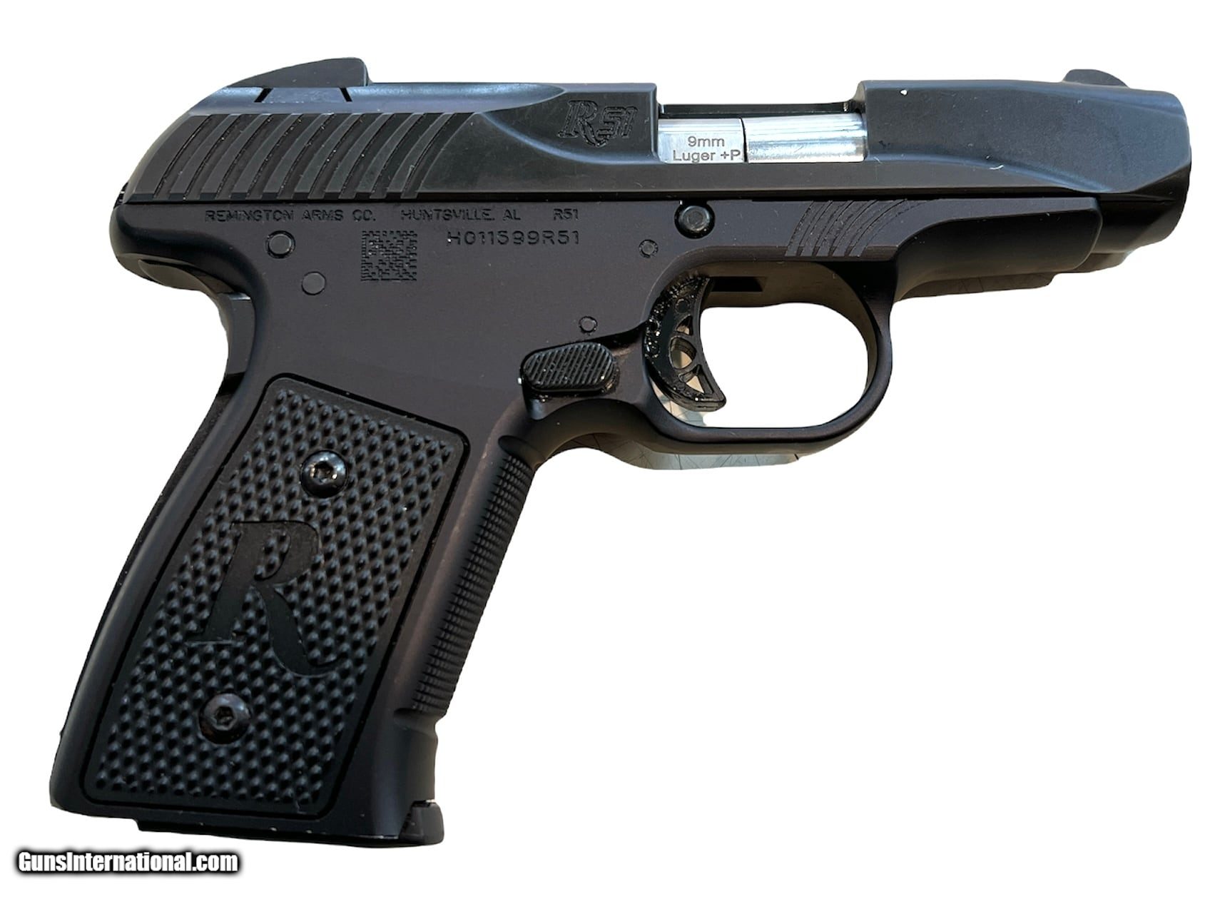 Description: Guns Listing ID: 454062 Manufacturer: Remington Importer: Remington Model: R51 Type: Handgun Action Type: Semi-Automatic Caliber / Gauge: 9 MM Finish: Black Barrel Type: Single Barrel Length: 3.4 Magazine Capacity: 7 Magazine Quantity: 2 Case included: no Condition: Used SOLD Manufacturer: REMINGTON Model: R51 Caliber Info: 9 MM Condition: Used - Non-Certified Barrels: 34 BARREL Finish: BLACK |