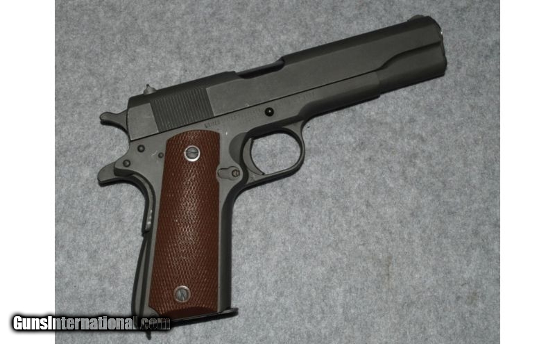Description: SOLD Manufacturer: 1943-1945 Caliber Info: .45 Auto Metal Condition: Refinished, handling marks. Wood Condition: Grips are very good condition Bore Condition: Very good. Barrels: 5 Triggers: Serrated issue trigger Stock: Brown plastic grips Weight: 3 lbs Sights: Square grooved rear/Blade front. Item Location: Lacey, WA |