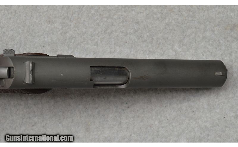 Description: Remington Rand M 1911 A1 U.S. chambered in .45 Auto is in very good condition with surface scratches. It has been professionally reparkerized. SN: 2436564 .45 Auto SOLD Metal Condition: Good condition Bore Condition: Clean and shiny Barrels: 5 Butt Pad: Checkered grip Weight: 2 lb 7 oz Item Location: Fort Worth, TX |