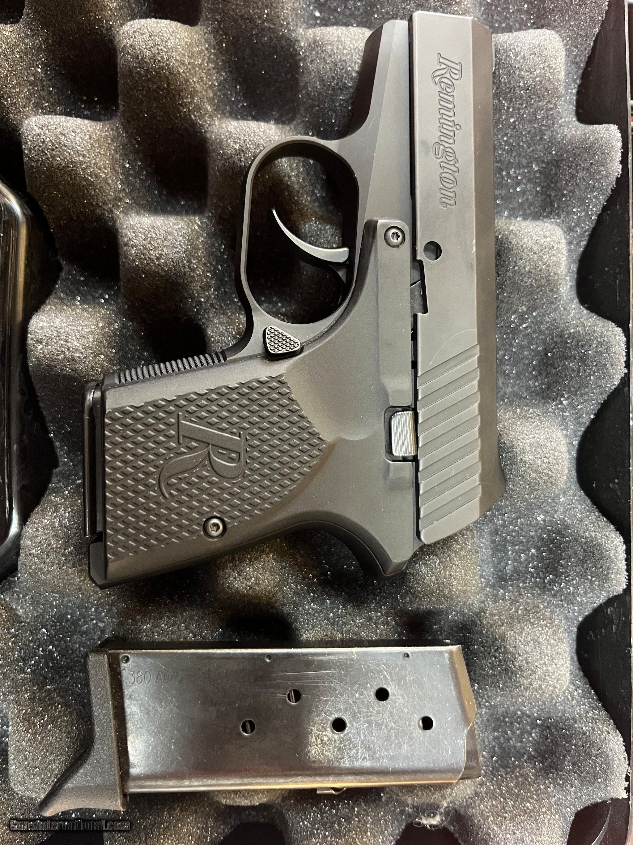 Description: Guns Listing ID: 785254 Comes in a hard case with two 6 round magazines. SOLD Manufacturer: REMINGTON Model: RM380 Caliber Info: .380 ACP Condition: Used - Non-Certified Barrels: 2.9 BARREL Finish: BLACK |