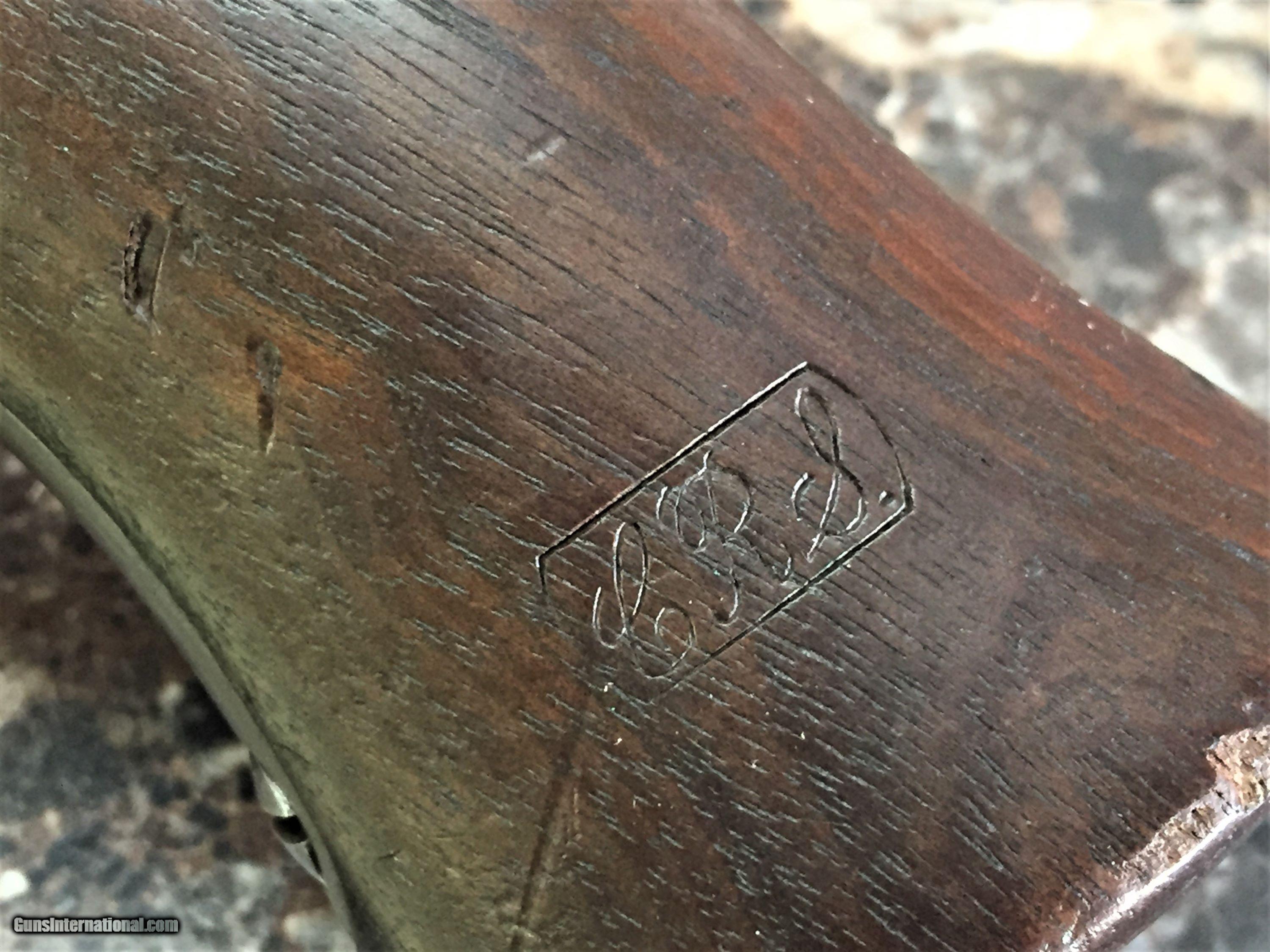 Description: Remington Rolling Block. 50CF. Excellent Condition Blue and Case colors. strong cartouche, Grips have a small chip and have the marks of having driven some nails on the bottom (see photo)_ Bore is strong,Markings are excellent. Gun overall is very nice. From the estate of Elliot Burka (Mr Remington) Purchased at his estate . $3950 Shipping, $25.00 lower 48, C/C please add 3% SOLD Antique: Yes Manufacturer: Remmington Model: Rolling Block Caliber Info: 50CF Condition: excellent |