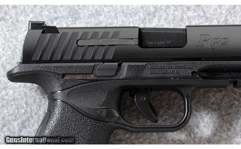 Description: The Remington® RP9™ is a full-size semi-auto pistol that delivers enhanced shooter control, reliability, and accuracy. The polymer frame features an optimized grip angle and a trigger guard undercut to increase shootability. An exaggerated beavertail naturally places your hand so the slide won't take a bite out of it. An integral Picatinny rail on the frame provides an attachment point for aftermarket sights and lights. The steel slide is beveled and contoured, with front and rear serrations to aid in loading and clearing the weapon. The front and rear steel sights are dovetailed to the slide and are windage adjustable. A PVD finish on slide and barrel maximizes durability. The striker fired design uses a single-action trigger, with a blade safety. 9mm Parabellum SOLD Metal Condition: Excellent Bore Condition: Excellent Barrels: 4.5 inch barrel Triggers: Striker fire Weight: 32 oz. Sights: Three dot night sights Item Location: Lehi, UT |
