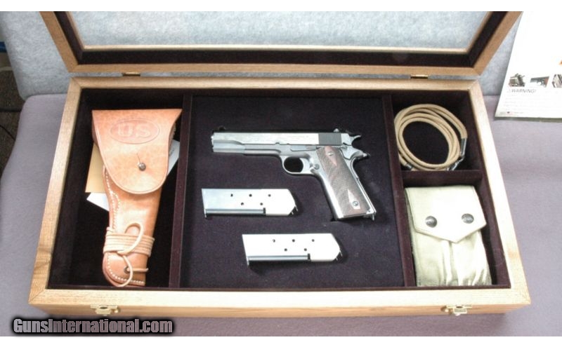 Description: Remington UMC 1911 Commemorative Pistol - with authentic commemorative US Military markings and US Property markings.Each gun has been hand fitted and comes in a wood presntation case with military type accessories. SOLD Caliber Info: .45 ACP Metal Condition: New Wood Condition: Grips Are New Bore Condition: Bright Barrels: 5 Triggers: Single Action Stock: Remington Checkered Wood Grip Panels Sights: Iron Sights Extras: With wood presentation case and accessories Item Location: La Vista, NE |
