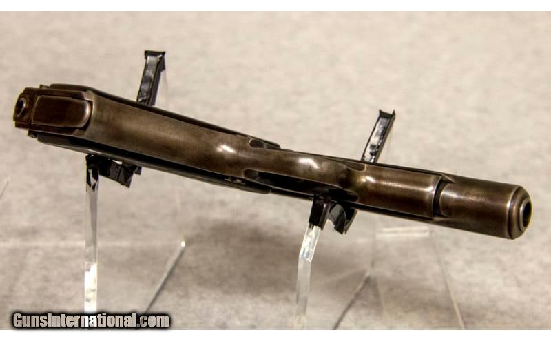 Description: Remington Model 51, chambered in .380 ACP. Features include: hard rubber 2-piece grips with company's name, blued finish. Finish has turned to a brown patina and there is some loss at the barrel end and around the edges of the frame. .380 ACP SOLD Chambers: .380 ACP Metal Condition: Good Bore Condition: Good Barrels: 3.5' Sights: Iron Item Location: Fort Mill, SC |