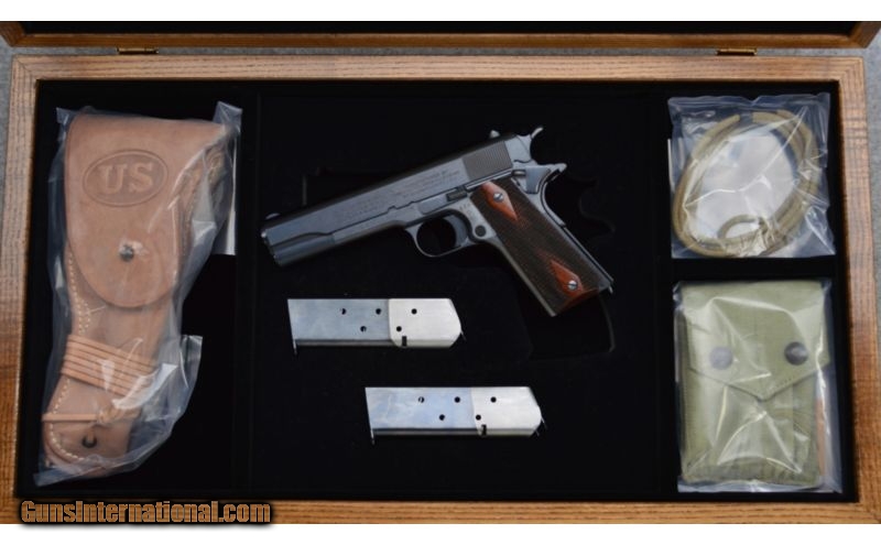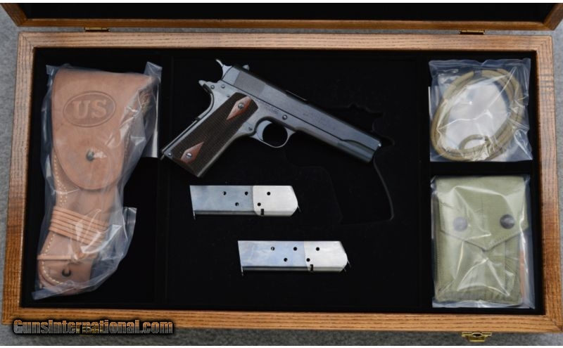 Description: Excellent condition with display case and accessories. Extra 7 round capacity two-tone magazine. SOLD Manufacturer: Circa: 2014 Caliber Info: .45 Automatic Colt Pistol Metal Condition: Excellent Wood Condition: Excellent Bore Condition: Excellent Barrels: 5 Triggers: Single Action Stock: Diamond Checkered Walnut Grips Weight: 2 lbs. 4 ozs. Sights: Fixed Open Sights Item Location: Hamburg, PA |
