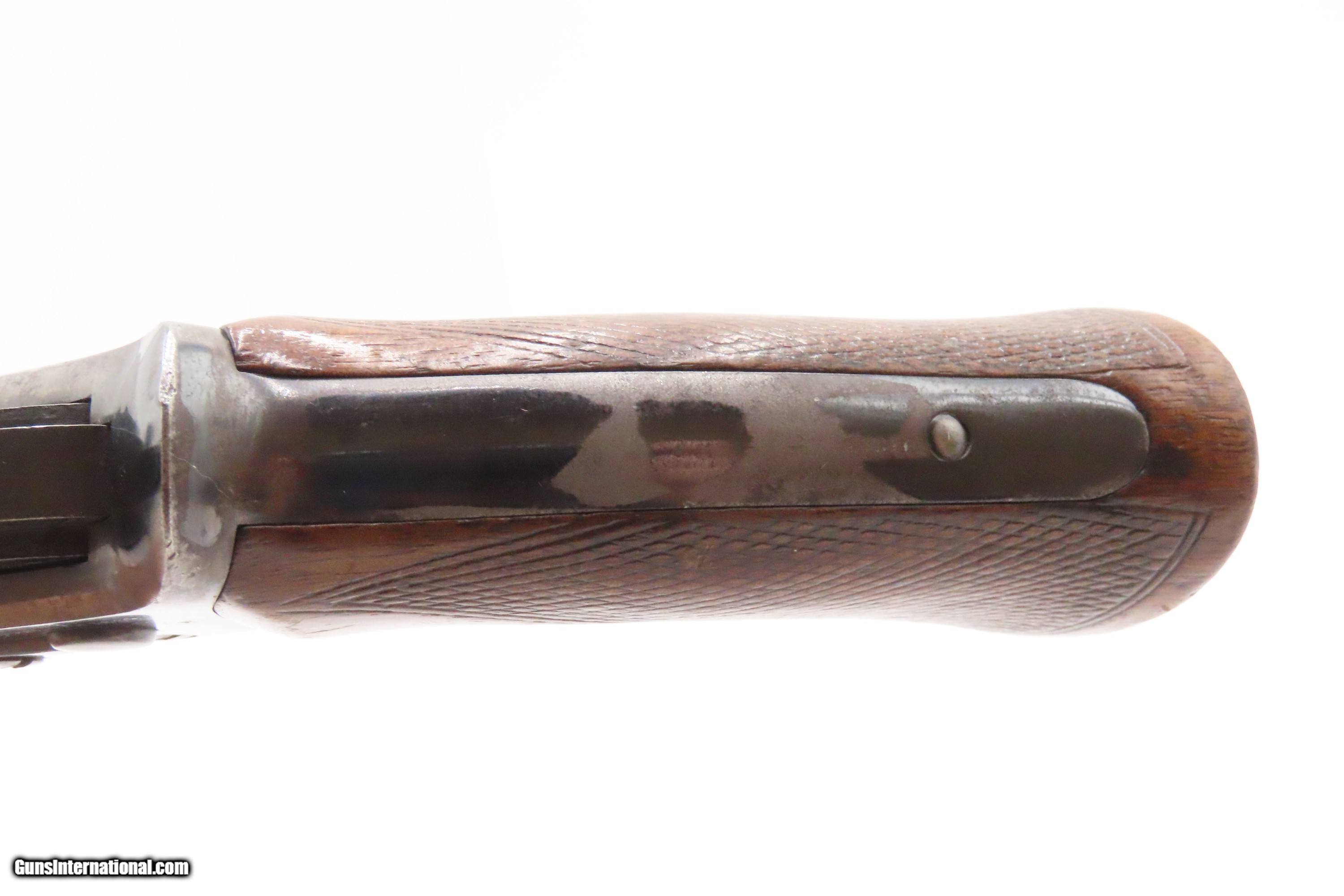 Description: SCARCE REMINGTON Mod 1901 .22 LR Rolling Block TARGET Pistol Long Rifle C&R 1 of an Estimated 734 Manufactured Here we present a C&R Remington Model 1901 Rolling Block Target Pistol in .22 LR, manufactured circa 1900-1909 in Ilion, New York. This Model 1901 is based on the earlier military Model 1891 pistols. The 1901 was built solely as a target pistol and was chambered in .22 Long Rifle and .44 Russian Centerfire. These pistols saw Olympic use and only 734 of these pistols were ever made. These were the last of the Rolling Block pistols and considered the best of the various models made starting in 1865. In the words of author Jerry Landskron, "It was the last and finest production model manufactured by the Remington Arms Company" (page 215 of "Remington Rolling Block Pistols"). It has an adjustable receiver mounted rear sight and beaded blade front sight. The rolling block design was an evolution of the split breech carbine design of Leonard Geiger. Geiger’s intent was to design an arm using a metallic cartridge that could be cheaply and easily manufactured for use during the American Civil War. Remington manufactured about 20,000 split breech carbines in three different rimfire calibers, but most were delivered too late to be used in the war. These pistols were a strange selection for a martial pistol given the prevalence of revolvers by this time and the obvious drawbacks of single shot weapons. Nonetheless, they are powerful sidearms and are incredibly reliable, just like the Remington rolling block rifles. The overall condition is near fine. Original blue finish and case colors. The action is excellent and crisp. The bore is bright with sharp rifling. The stock is solid with nice checkering. A great .22 pistol you don’t want to miss! This firearm is classified as a Curio & Relic. Barrel is 10 inches. Caliber: .22 Long Rifle Overall condition as seen in photos. Very Fast. Very Safe. FREE SHIPPING WORLDWIDE. Delivered directly to your door by express mail! Guaranteed AUTHENTIC & Includes CERTIFICATE OF AUTHENTICITY. ancestryguns $1800 #247126 SOLD Curio/Relic: Yes |
