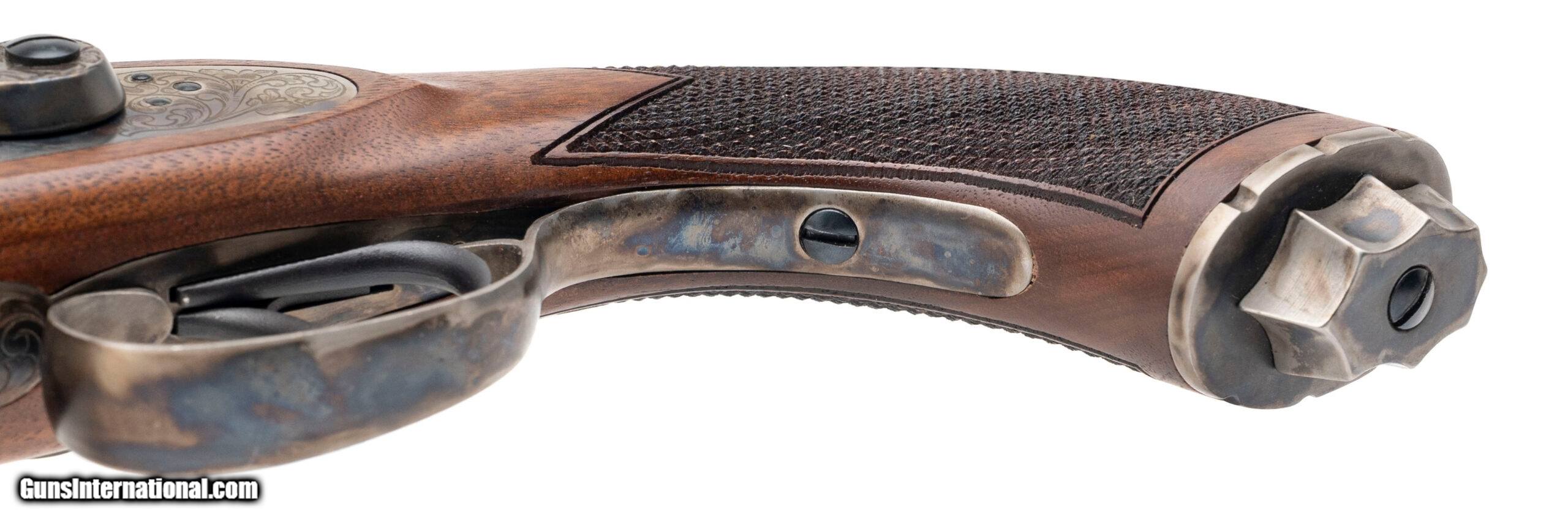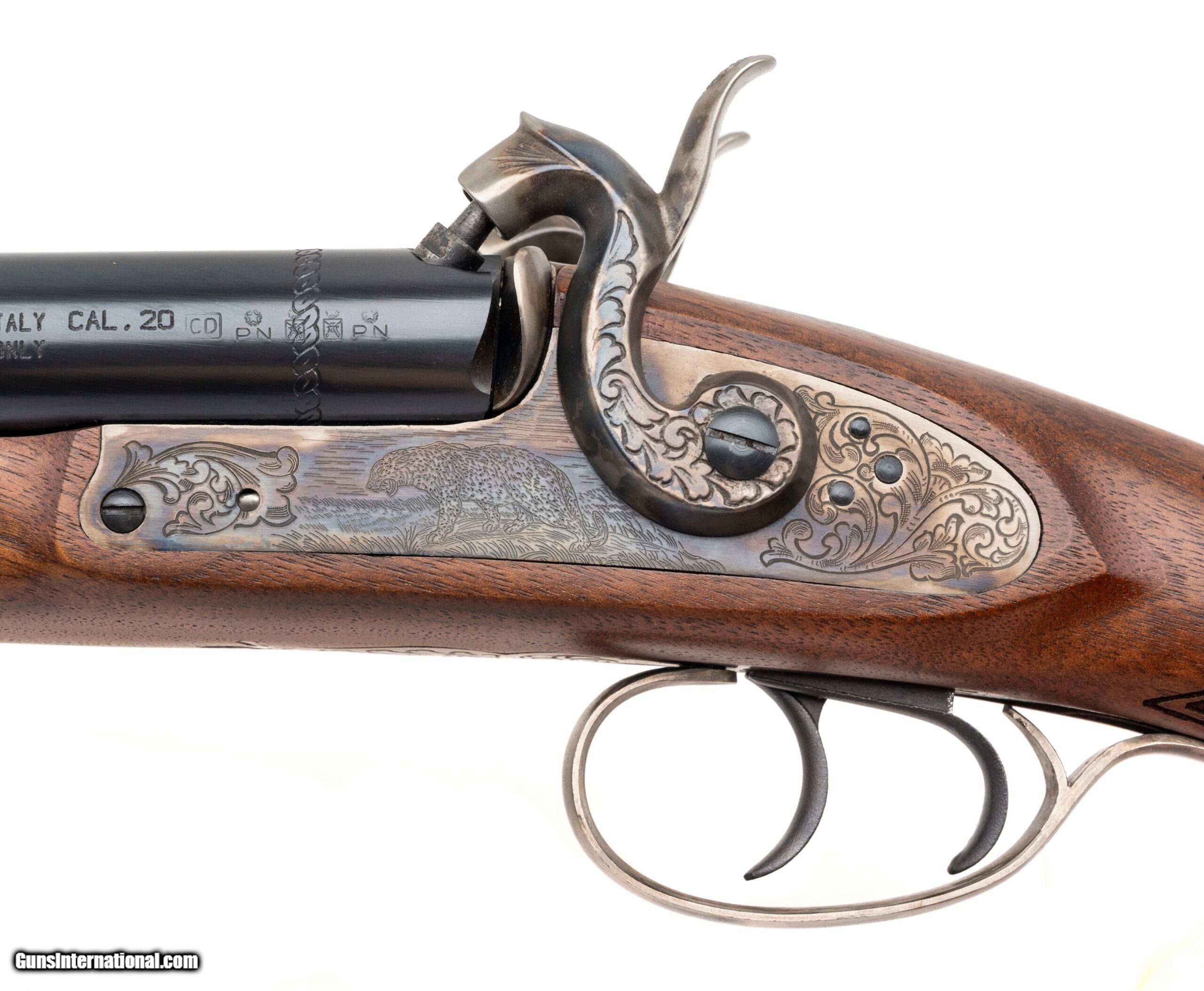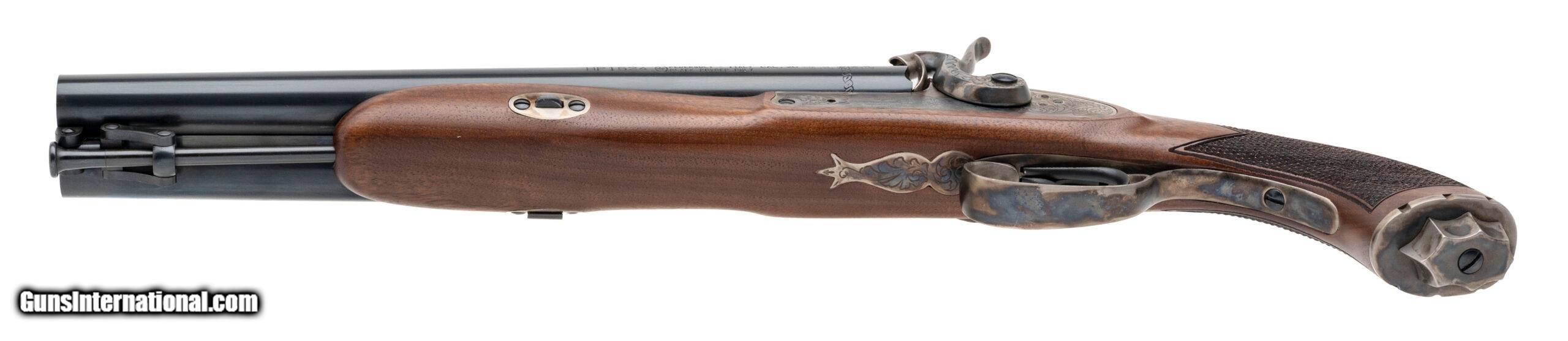 Description: "SN: HP1624. Modern production, .20 Cal. with 11.25"" smooth bore barrels. Bores are very good. Italian made modern black powder double-barrel pistol with blue finished barrels, engraved lock plates, and checkered American walnut stock. Finish shows light handling marks. Overall condition is near excellent. Price: $995.00 Contact Seller |