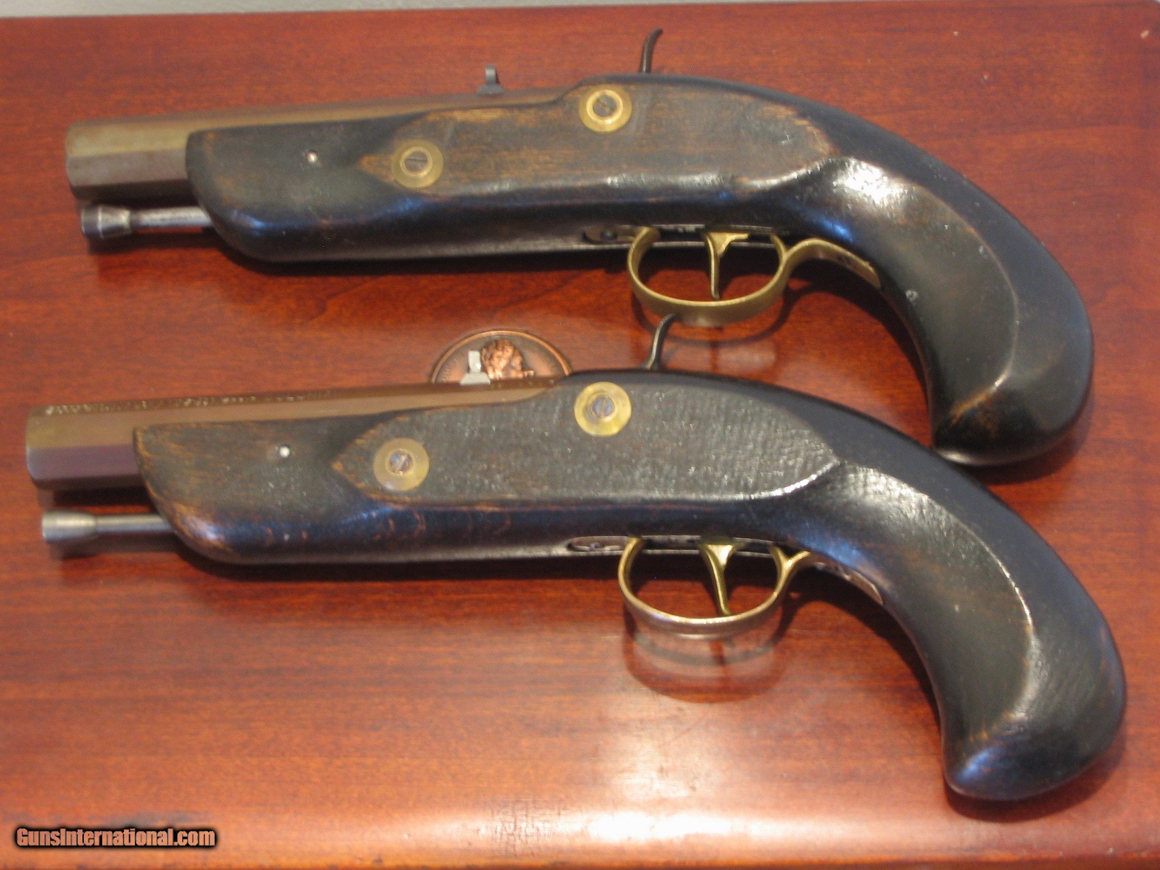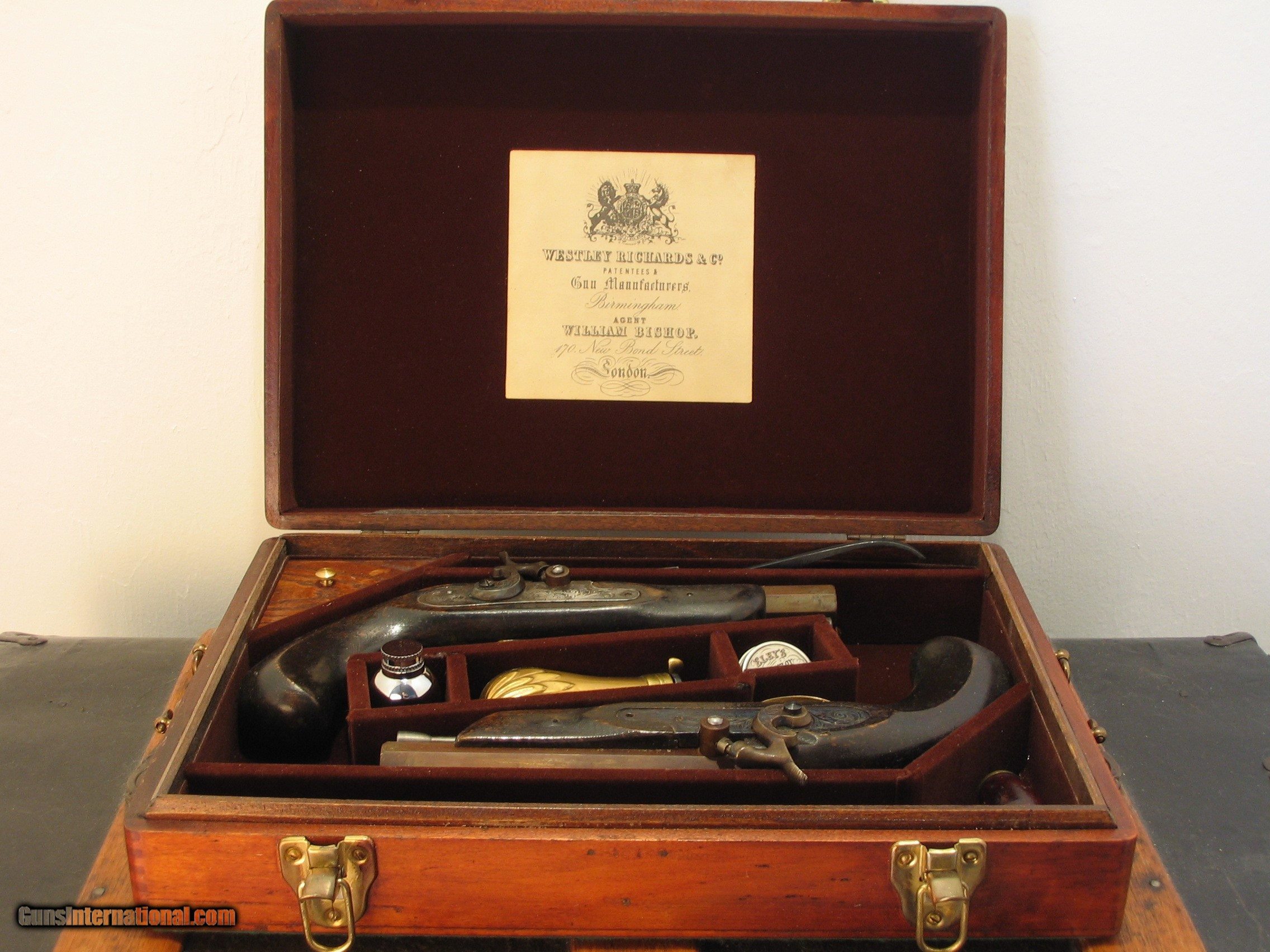 Antique .45 cal. Percussion Replica English Gentlemens Travel Coat Cased Pistol Set