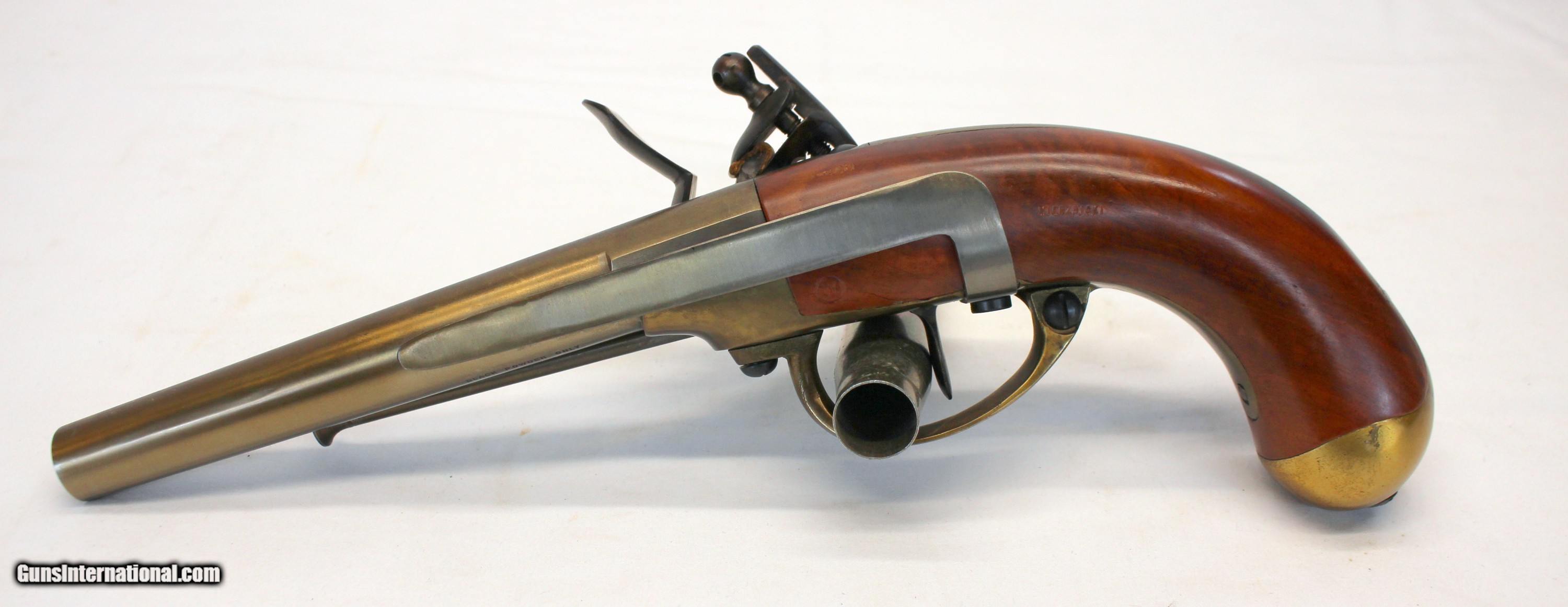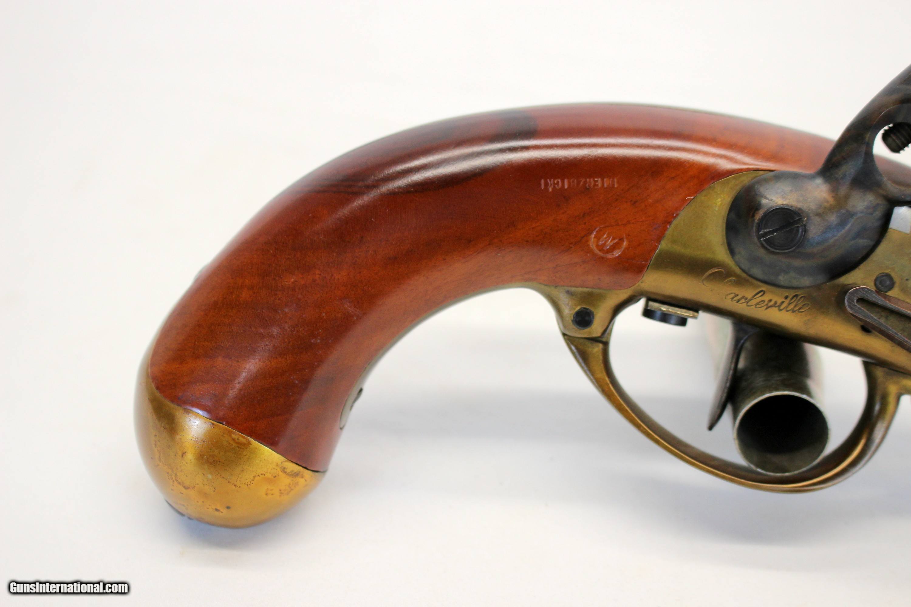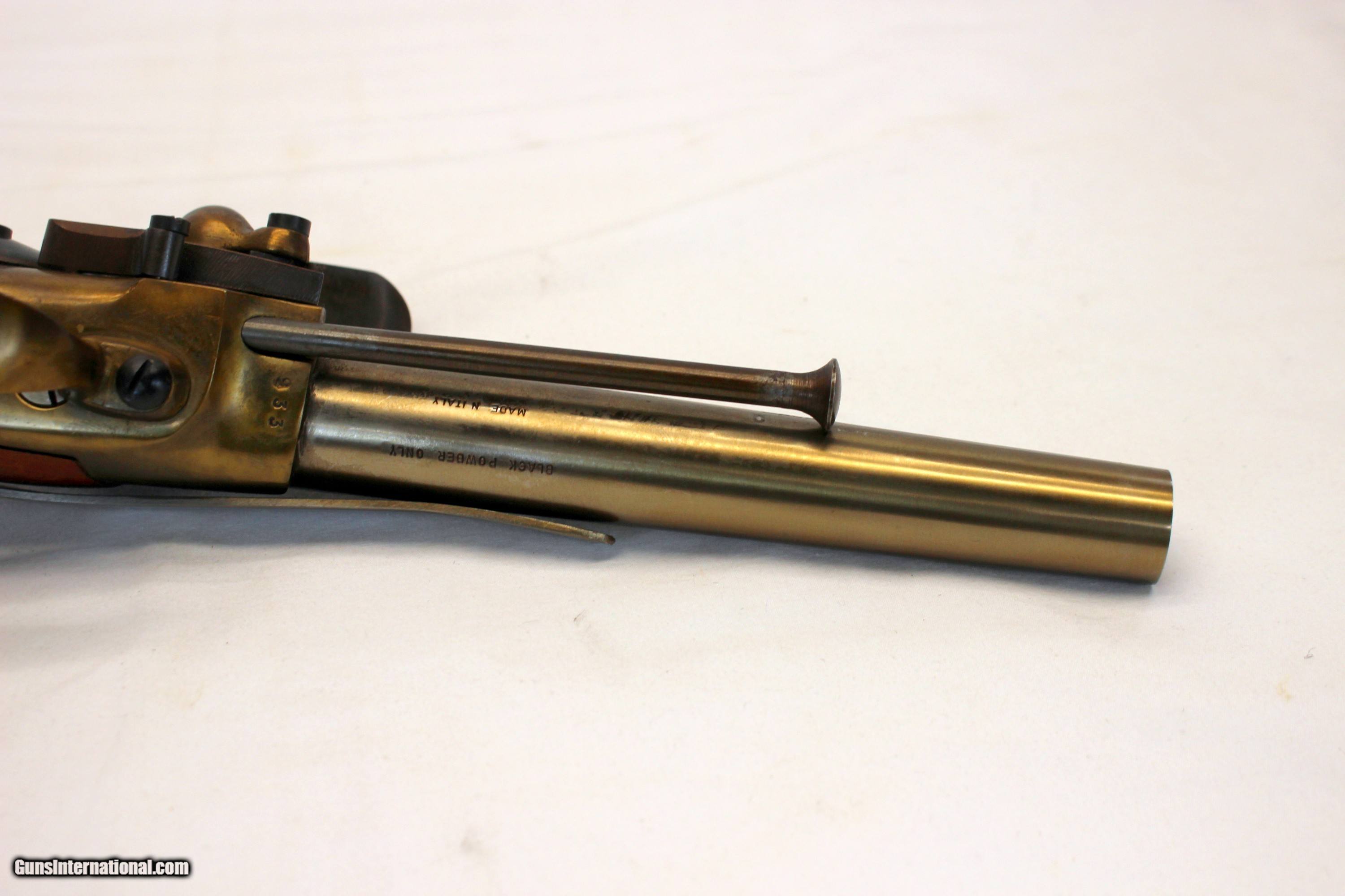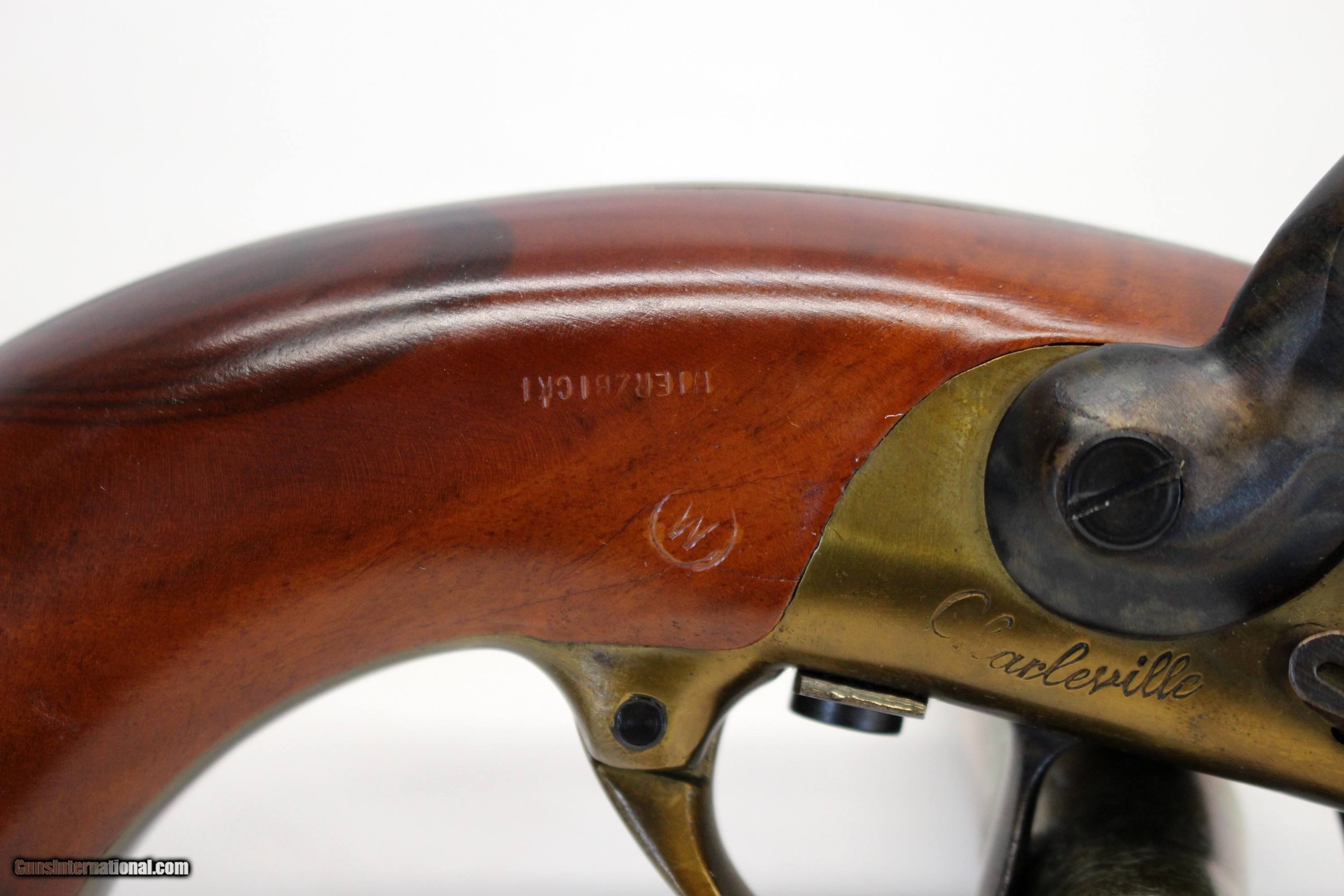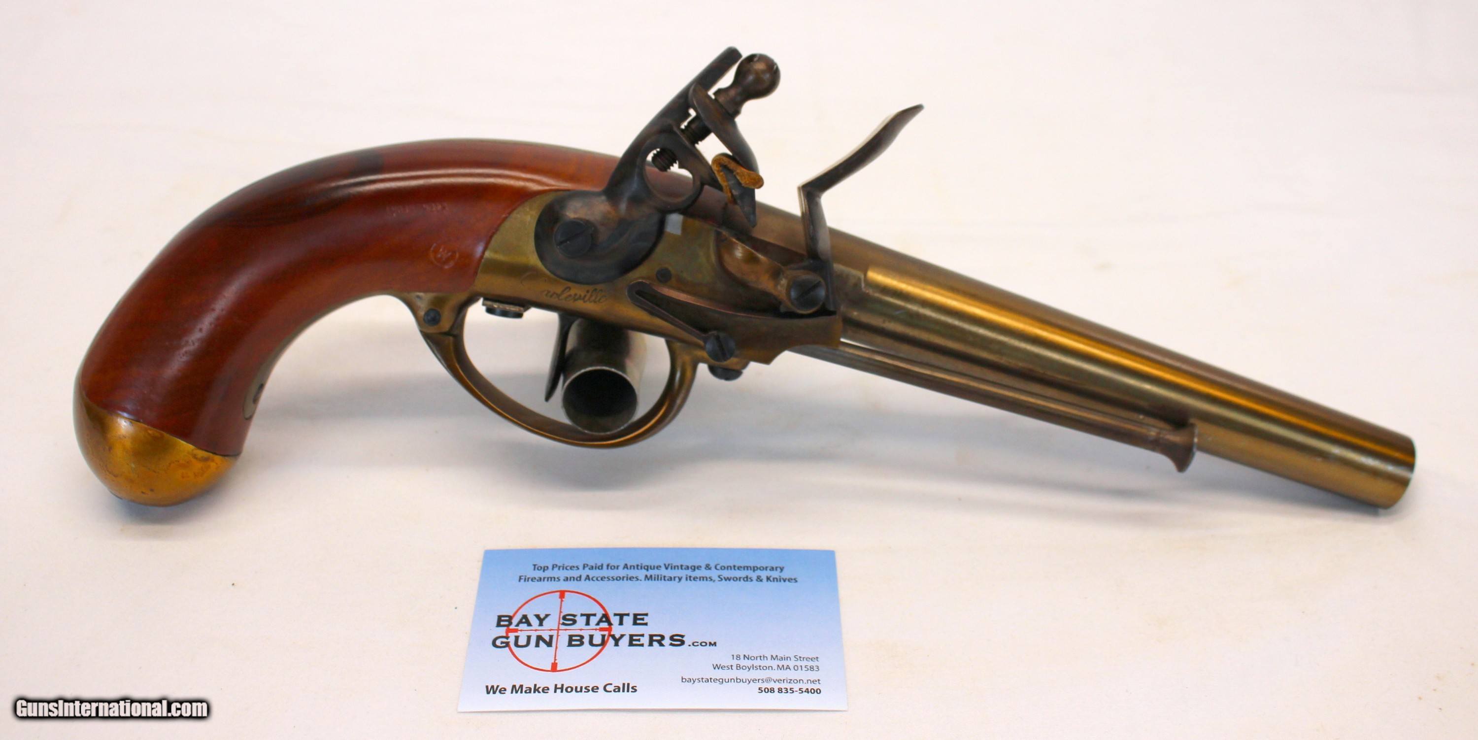 Description: We are offering for sale a preowned Navy Arms 1777 CHARLEVILLE Flintlock Pistol chambered in 69 caliber. This is a fully functioning replica in very good condition. Metal components are very good with scattered patina. No damage noted. The wood stock is good to very good with previous owners last name “Wierzbicki” and “W” stamped on lright and eft side of trigger. Gun functions flawlessly. SEE PHOTOGRAPHS FOR ALL DETAILS BLACK POWDER REVOLVER SHIPS DIRECTLY TO BUYER Shipping is 29.95 via USPS PRIORITY **** PLEASE NOTE: WE ONLY ACCEPT MASTERCARD AND VISA AS PAYMENT OPTIONS (please note we charge a non-negotiable 3% CC fee) **** **** WE TAKE CREDIT CARD PAYMENT OVER THE PHONE. WE DO NOT TAKE PAYMENT THROUGH THIS **** PLEASE LOOK AT ALL PHOTOGRAPHS FOR CONDITION Please know the legality of any weapon in your state before . If a gun can’t be transferred to you we will charge a 15% re-stocking fee. We are in the shop MODAY, WEDNESDAY, THURSDAY, FRIDAY and SATURDAY 8am-4pm EST. We will be in touch within 24 hours of your purchase. Please be ready to provide CC information. Please have your FFL email a copy of their license to: . No Face To Face Transfers! Please note: Clicking "buy" does not guarantee that this gun is yours, However clicking “Buy” will reserve this gun for you, if it hasn’t been sold in store. We will try to do our best to remove the posts as efficiently as possible, but sometimes delays may ensue. “Buy” is your safest bet to reserve a gun. Also please add 6.25% MA state sales tax (if from MA) and 3% credit card shop courtesy fee for all out of state buyers Before calling with concerns read these conditions and meet them accordingly. SOLD |