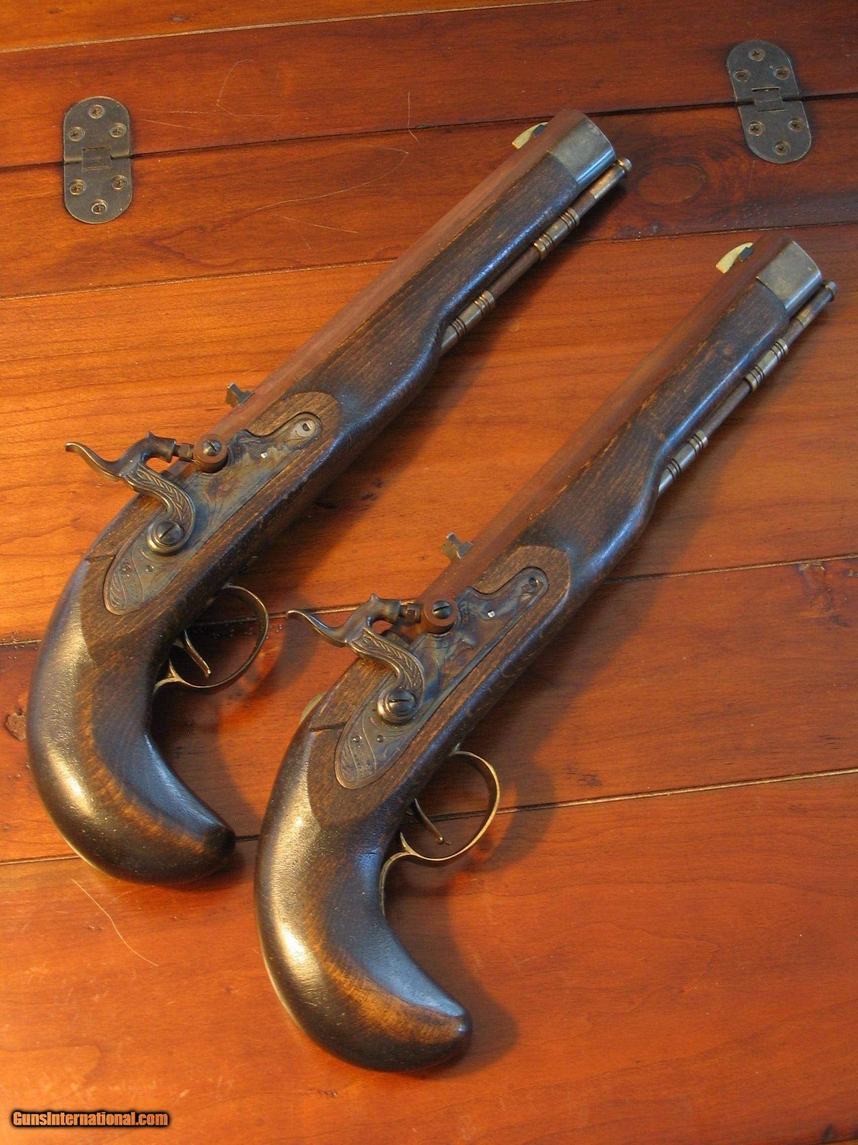 Recreated Antique ca.1845 Black powder .50 Cal. English Gentleman`s Dueling Pistol Cased Set