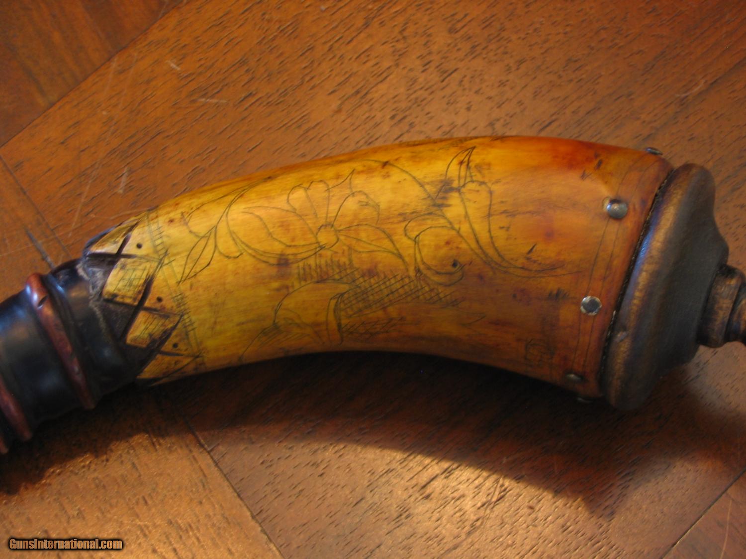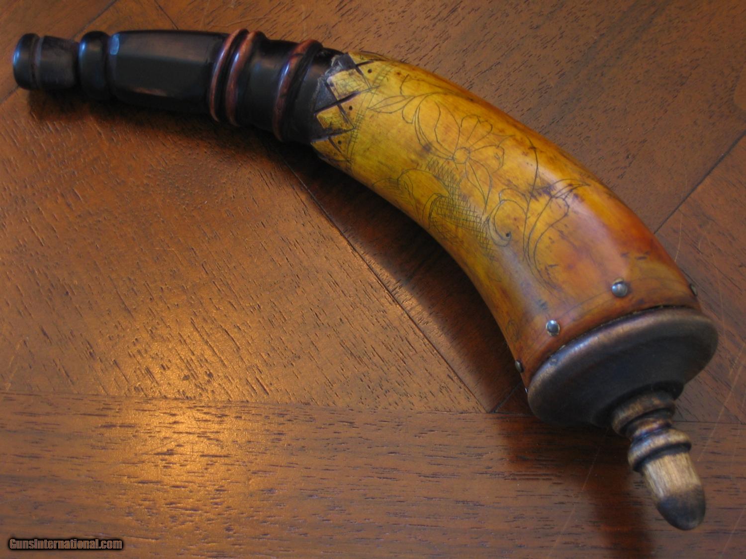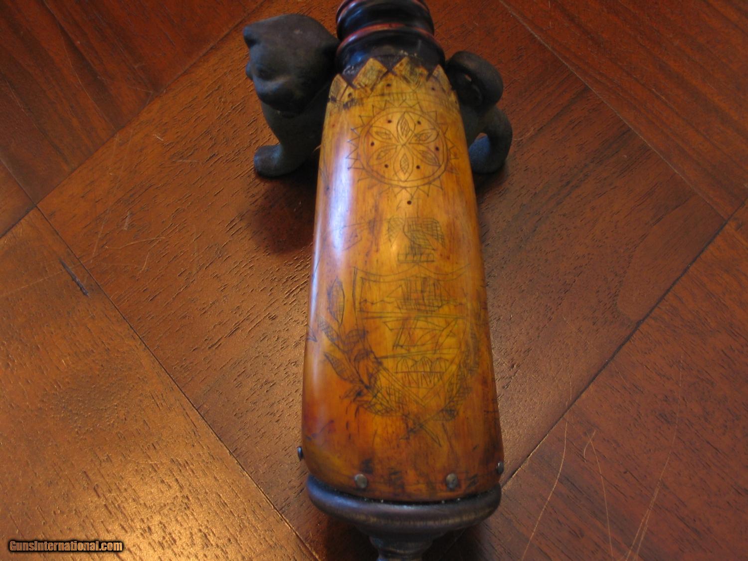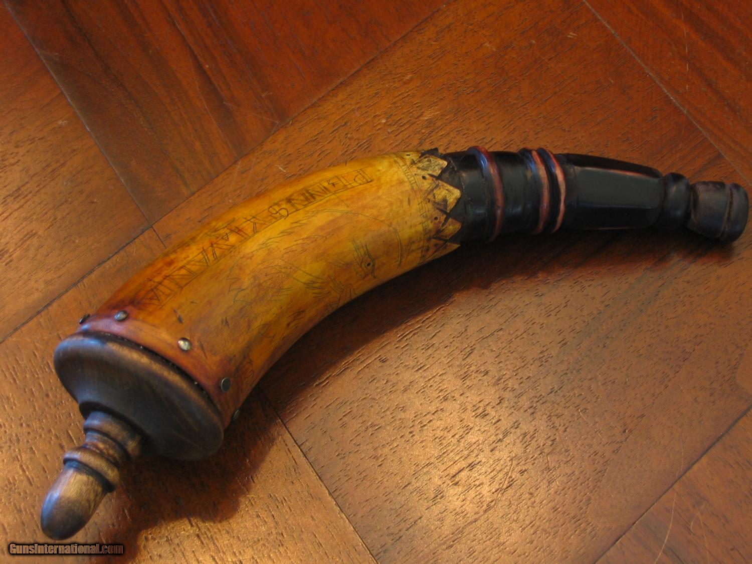 Description: This is a .50 cal Kentucky Pistol Cased Set. The case is solid Mahogany with a brass lock and working key. The fitted interior is covered with dark green velvet. It is 17"x 12"x 4"high. The pistols were made from Traditions kits. They have not been fired. The accessories include a turnscrew, .50 bullet mold, cap tin, brass oiler, cleaning rod and .50 cal balls. There is a scrimshawed real 9" powder horn. The bottom is covered with green felt. It will be shipped to you after your payment clears using PayPal only. Offers are welcomed. No shipping to N.J. or Canada. US only. SOLD |