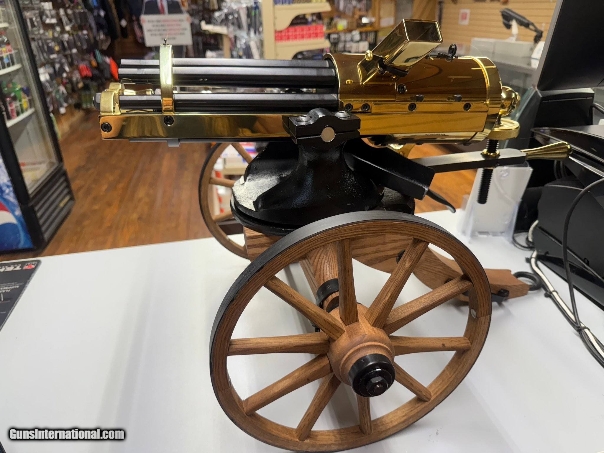 Description: Guns Listing ID: 621580 Tippmann Ordnance, Gatling Gun, Hand Crank, 9MM, (8) 10\" Barrels, Steel, High Polish Finish, Gold, Compatible with Glock Pattern Magazines, 33 Rounds, 1 Magazine, Includes Oak Carriage Assembly Manufacturer: TIPPMANN ARMS Model: 8-Barrel Gatling Gun Caliber Info: 9MM LUGER (9x19 PARA) Condition: Used - Non-Certified Barrels: 10" BARREL Action: SEMI AUTOMATIC Finish: BLACK GOLD Price: $8,300.99 Contact Seller |