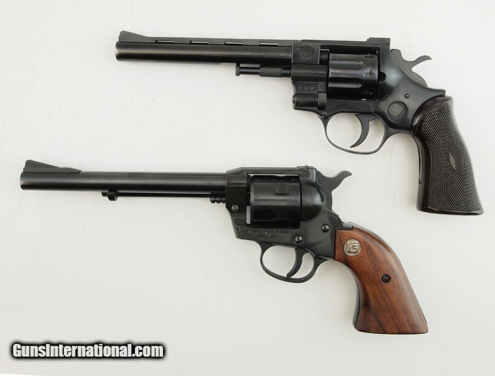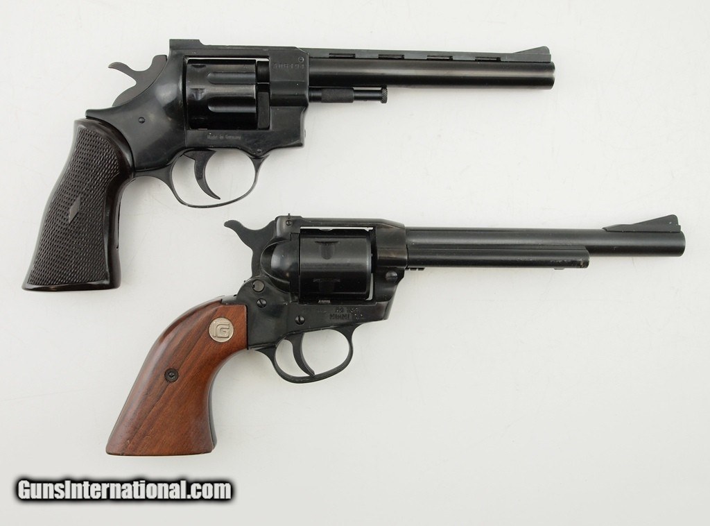 Description: Arminius HW7 AND ROHM High Noon MFG Germany .22 Cal. TWO German made .22 MAG revolvers in ONE deal! Arminius HW7 8 Shot DA/SA .22 MAG, 6" vented rib bbl, bright shiny bore, good rifling, blued finish, rear notch sight, front ramp sight, tight action, and dark brown checkered grip. Sold AS-IS, No Return. ROHM High Noon SA 6 Shot .22 MAG, 6.5" bbl, shiny bright bore, good rifling, rear notch sight, front ramp sight, tight action, and very nice smooth hardwood grips inlaid with RG medallion. Sold AS-IS, No Return. Add 3% for Credit Card Shipping $35.00 SOLD |