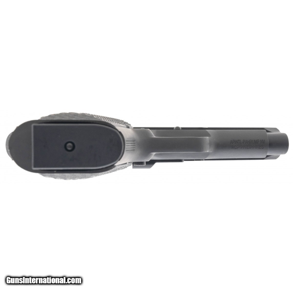 Description: " SN: RIA2138297. Commander sized 1911 with fiber optic front sight and adjustable rear sights. Overall excellent condition. Comes with box. SOLD |