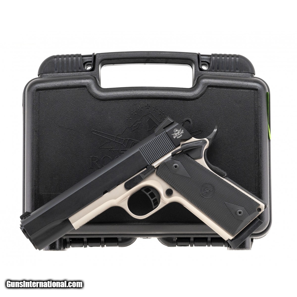 Description: " Two-tone 1911 steel frame, 5"" barrel with rubber grips, 8 rounds, 1 magazine. New. UPC:4806015514473 SOLD |