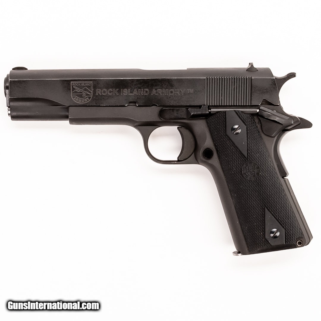 Description: Guns Listing ID: 394200 The Rock Island Armory M1911-A1 FS is an affordable 1911 chambered in the venerable .45 ACP. They are well-built firearms that are great for personal protection, range time, and home-defense. This handgun comes with one 8-round magazine, two sets of grips, and the original case with the manual. SOLD Manufacturer: ARMSCOR Model: M1911-A1 FS Caliber Info: .45 ACP Condition: Used - Certified Barrels: 5 BARREL Finish: BLACK |