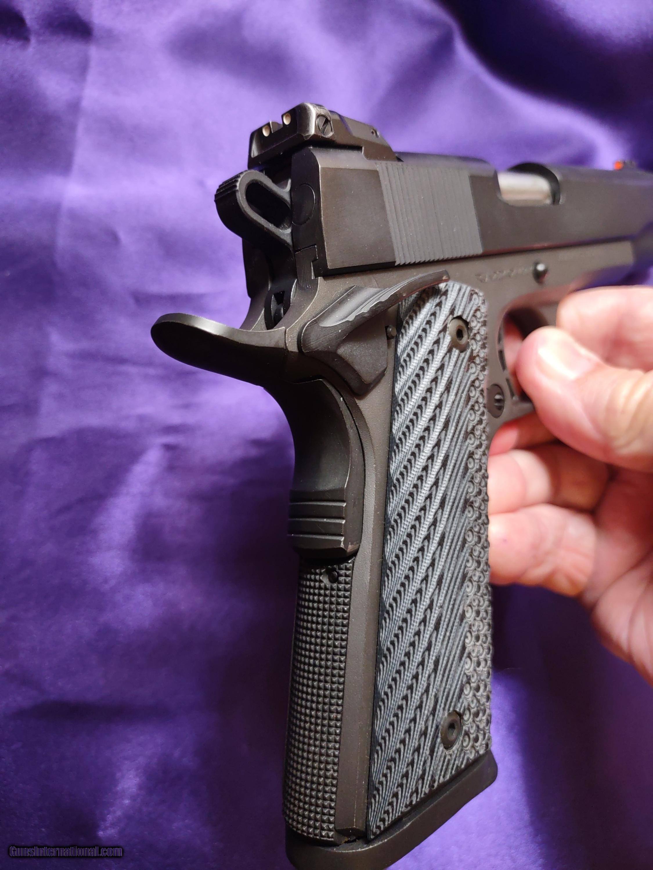 Description: ROCK ISLAND ARMORY 1911 A-1 FS TACTICAL II in .45ACP caliber, 8+1 capacity, FS=FULL SIZE, 5" barrel, adjustable rear sight with fiber optic front sight, ambidextrous safety and grip safety, black parkerized matte coating, skeletonized adjustable trigger with combat hammer, factory G10 tactical grips made by Armscor in 2020 in Markina, Philippines and imported by Armscor International in Pahrump, Nevada. Overall condition: 99.99%, excellent, near perfect with bright, glossy bore. The price is $750 including UPS shipping to the FFL dealer near you. Call or text me at 318-780-4242 if you are interested. SOLD Manufacturer: Armscor Model: 1911 A-1 FS TACTICAL II Serial Number: RIA2240442 Barrel Length: 5 Chambers: flawless Ejectors: Semi-automatic Condition: Excellent, near perfect Metal Condition: Flawless Wood Condition: No wood Bore Condition: Perfect, glossy Barrels: Single Barrel Type: Pistol Action: Semi-automatic Triggers: Single Finish: black, parkerized matte Sights: open, adjustable Manufacture Date: 2020 Engraving: None Case: Quality soft zipper carry case Item Location: Shreveport, Louisiana |