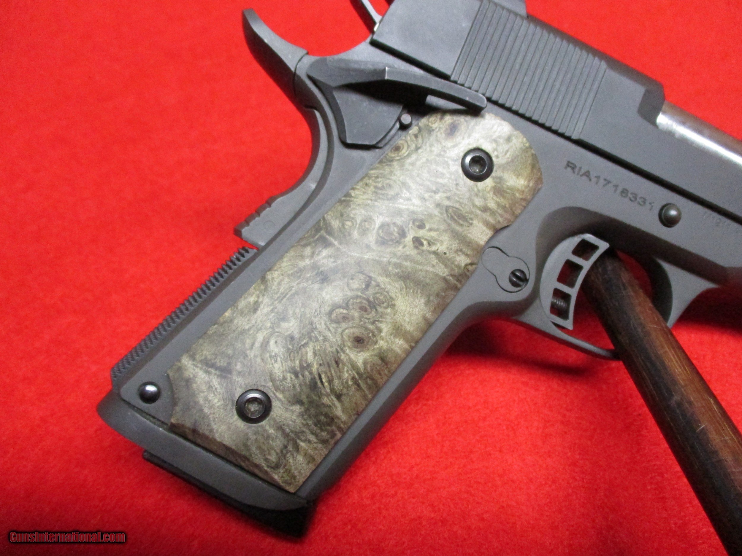 Description: This is a nice little compact 1911 for tactical use or self defense use. It features a red fiber optic front sight and an LPA adjustable white dot rear sight. It uses a skeletonized hammer and trigger, the latter featuring an overtravel stop for adjustment to the users liking. The TAC II has an ambidextrous safety for left hand shooters. The front grip face features stippling for an improved grip. The original grips (currently in the box) have been replaced by smooth, petrified wood style grips which give the pistol a nice look. A beveled magwell adapter has been fitted for easier mag insertion in low light conditions. The pistol here is pre-owned but has been used very little. The bore exhibits no rust or pitting, only powder residue of which there is little present. Trigger pull is a factory standard 4 lb. pull. The Tac II comes with the original box, manual, the original grips, and two spare, non-Rock Island magazines. SOLD Manufacturer: Rock Island Armory Model: 1911 A1 CS Tac II Serial Number: RIA1718331 Caliber Info: .45 ACP aka .45 Auto Condition: Used - Excellent Barrels: 3.625 inches (92mm) Barrel Type: Bull Barrel Action: Single Action Triggers: Skeletonized Stock: Smooth, Petrified Wood style Finish: Matte Parkerized Weight: 2.2 lbs. Sights: Fiber optic front, LPA adjustable rear Extras: Manual, original grips, 2 spare mags Case: RIA box |