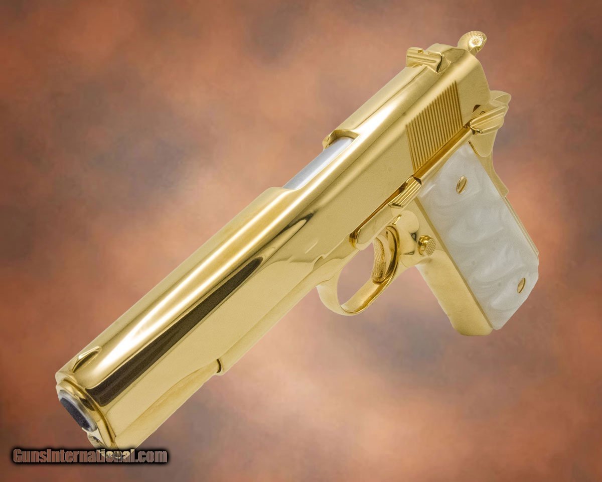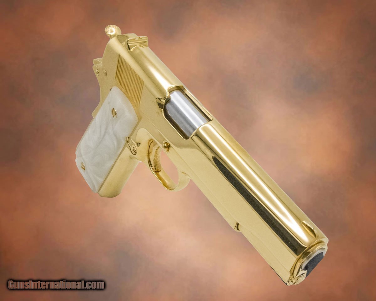 Description: Guns Listing ID: 461360 *** NEW IN A BOX *** (((EXCLUSIVE))) Rock Island 1911 GI Full Size 45 ACP Mirror Finish Polishing and 24K GOLD Plated, Upgraded Pearl Polymer Grips Mirror Finish Polishing & Plated with Upgraded Polymer Grips Rock Island 1911 GI full size, chambered in 45ACP with a 5” barrel, High polish and 24K Gold Plated with White Pearlized polymer grips, and 24K Yellow Gold Plated accents. This is a brand new gun that remains unfired. Complete with the factory case, manual, papers, gun lock, 8 rounds magazine. Specifications: • Manufacturer Part #: 51421 • UPC: 4806015514213 • Brand: Rock Island • Category: Pistols • Series: 1911 GI FS • Caliber: 45 ACP • Barrel Length: 5\" • Model 1911 • Capacity: 8 + 1 • Frame Finish: 24K Gold Plated • Sight Style: Fixed • Slide Finish: 24K Gold Plated • Grips: Upgraded White Pearlized Polymer • Safety: Manual Thumb • Max Capacity: 8 SOLD Manufacturer: ROCK ISLAND ARMORY Model: 1911 - 45ACP - 5" - Mirror Finish Polishing & All 24K GOLD Condition: Used - Non-Certified Barrels: 5 Gauge Info: .45 ACP Finish: gold plated |