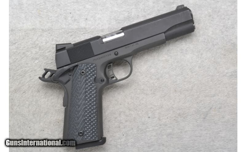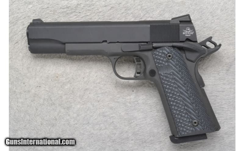Description: This Rock Island Armory Model M1911 A1-FS is a right-hand semi auto pistol in .45 ACP cal. It has a 4.75-inch barrel with rear slide serrations, blade front sight and notch rear sight. The textured grip is a black polymer pistol grip with a finger groove. .45 ACP SOLD Chambers: 8 round detachable magazine Metal Condition: Very good with handling marks Bore Condition: Good Barrels: "4.75 inches, with rear slide serrations Weight: 2 lbs 8 oz Sights: Black blade front sight. Black notch rear sight. Item Location: Richfield, WI |