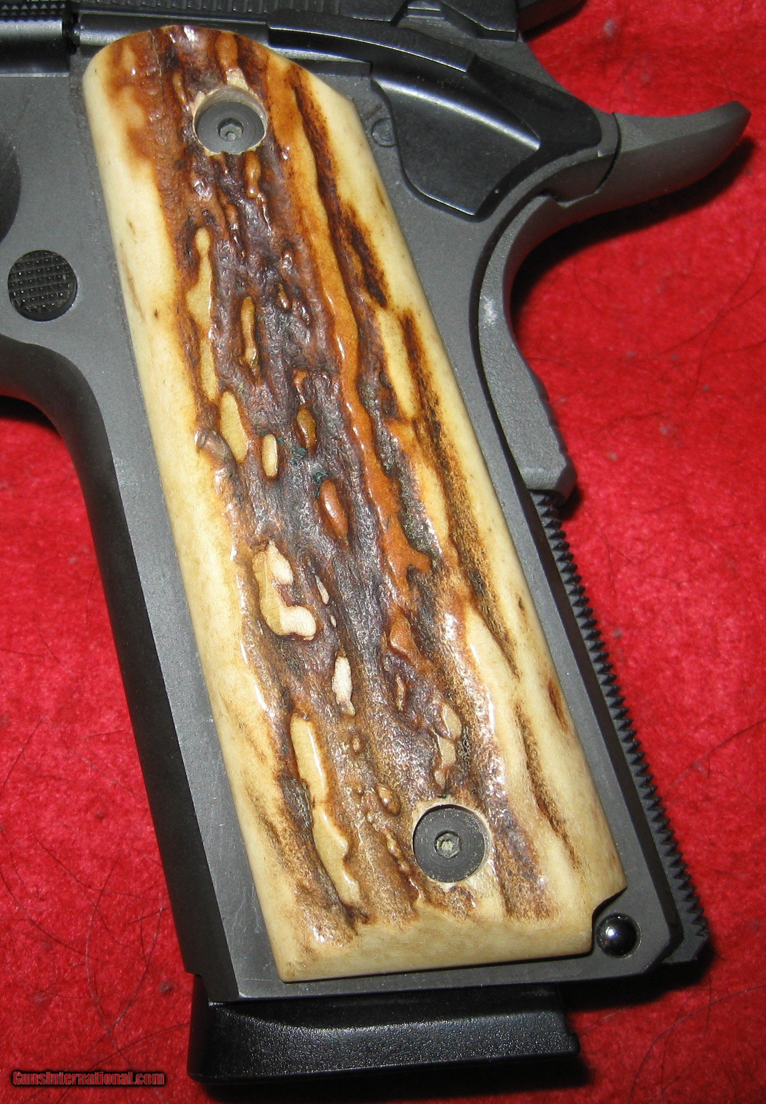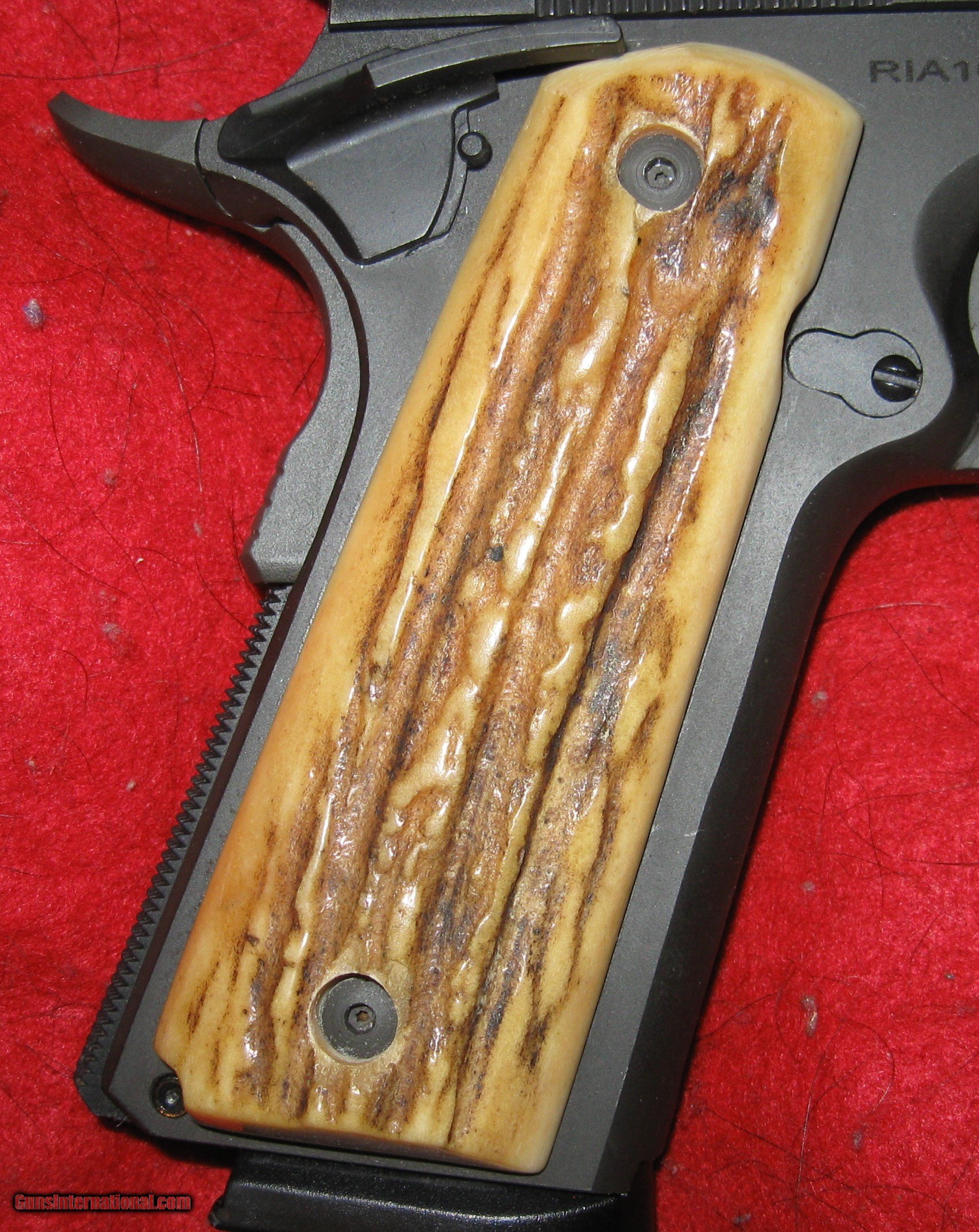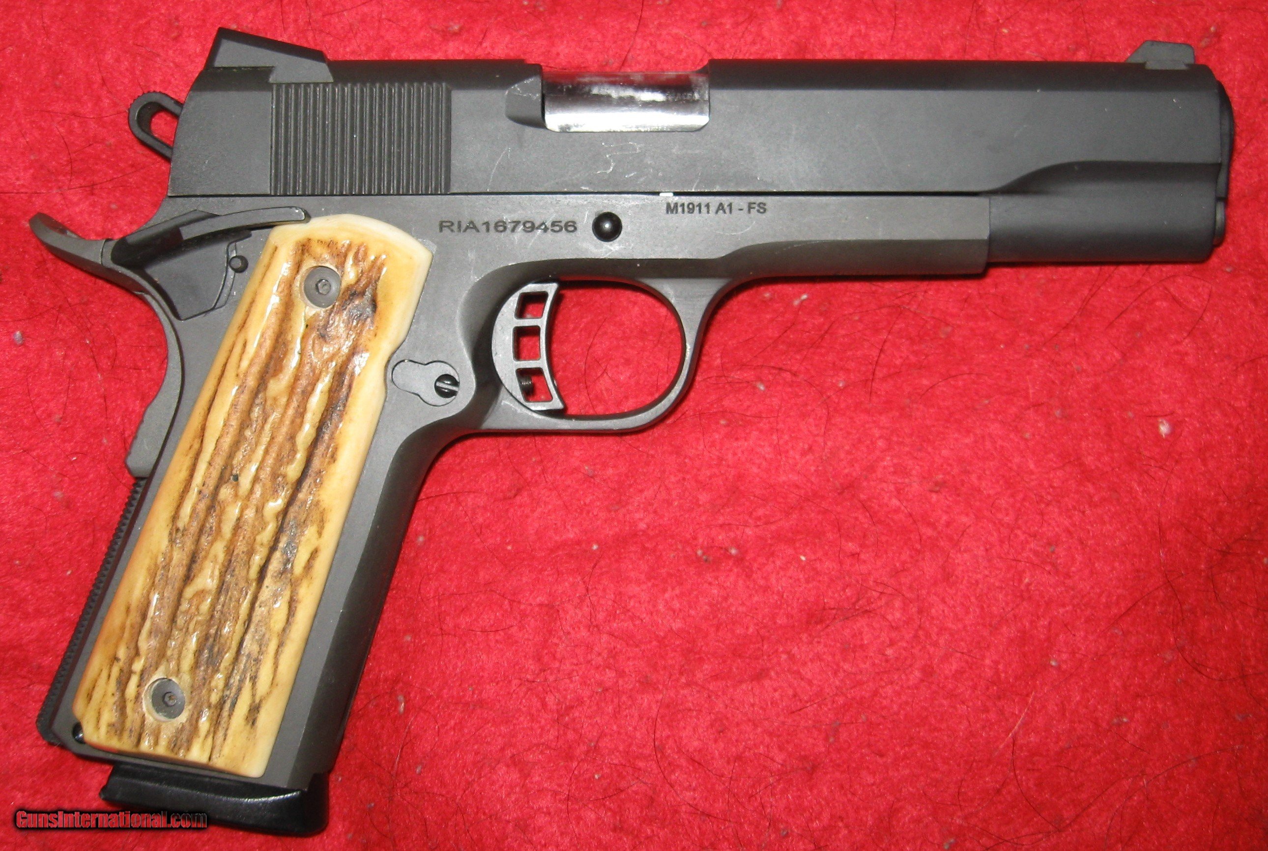 Description: THIS ROCK ISLAND ARMORY PISTOL IS THE 1911 A1 FS TACTICAL MODEL SERIAL # RIA1679XXX. IT IS CHAMBERED IN 45 ACP AND IS VERY LIGHTLY USED (ABOUT 200 ROUNDS SINCE I BOUGHT IT). IT IS IN EXCELLENT CONDITION OVERALL WITH AN EXCELLENT BORE. THIS PACKAGE INCLUDES THE 1911 AI FS TACTICAL PISTOL WITH EXTENDED BEAVERTAIL, STIPPLED BACKSTRAP, GROOVED FRONT STRAP, SKELETON HAMMER WITH DOVETAILED DRIFT ADJUSTABLE FRONT AND REAR SIGHTS. IT HAS A TRIGGER STOP SCREW AND A SET OF WIDER THAN ORIGINAL FAUX STAG GRIPS. IT COMES WITH 4 MAGAZINES (1 ORIGINAL 3 PRO MAG) A BARREL BUSHING WRENCH, IT'S ORIGINAL WOOD GRIPS AND IT'S ORIGINAL CASE. SHIPPING IS $75 MY FFL TO YOUR FFL Handgun Caliber: .45 ACP (.45 Auto) Manufacturer: ARMSCOR/ROCK ISLAND ARMORY Model: 1911-A1-FS TACTICAL Serial Number: RIA1679XXX Barrel Length: 5 Condition: EXCELLENT Metal Condition: EXCELLENT Wood Condition: VERY GOOD Bore Condition: EXCELLENT Action: SEMI AUTO SINGLE ACTION Triggers: TRIGGER STOP SCREW Stock: ORIGINAL AND FAUX STAG Finish: PARKERIZED Sights: DRIFT ADJUSTABLE DOVETAILED FRONT AND REAR Extras: 3 PRO MAG MAGS, BARREL BUSHING WRENCH AND ORIGINAL GRIPS Case: ORIGINAL Grips: 2 PAIR- ORIGINAL AND FAUX STAG WIDE PROFILE Price: $595.00 Shipping: $75.00 Buy Now Contact Seller |