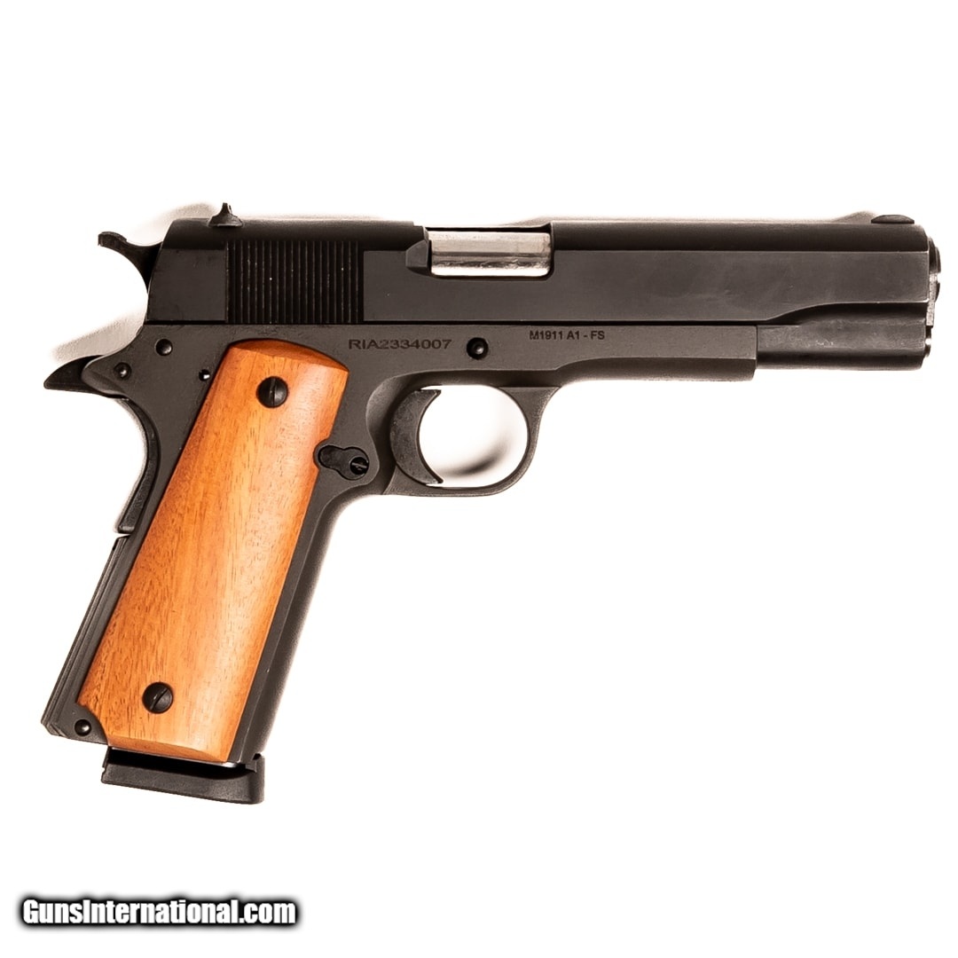 Description: Guns Listing ID: 775709 The Rock Island Armory M1911 A1-FS is a rugged and reliable handgun that‚‚s affordable yet well made. It‚‚s a great buy for those looking at entry-level 1911 without breaking the bank. Purchase of this M1911 A1-FS includes one 8-round magazine. Get the best bang for your buck when you get a Certified Used Firearm . When you see the Certified Used stamp on any of our firearms, you can be confident that you’re getting exactly what you want – a gun only in very good to excellent condition and held to the highest quality standard. All Certified Used Guns come with a ‘no questions asked’ return policy . PLUS, ALL CERTIFIED USED GUNS SHIP FRE SOLD Manufacturer: ROCK ISLAND ARMORY Model: 1911 A1-FS Caliber Info: .45 ACP Condition: Used - Certified Barrels: 5 BARREL Finish: BLACK |